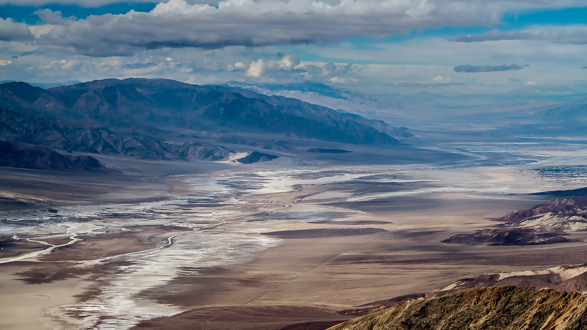 Death Valley doesn’t reserve its murderous inclinations just for the heat of summer. The shaley road out to the Racetrack Playa is slippery with sharp little rocks that send a motorcycle’s front wheel swimming for traction. Peering out from under them are large, round stones. Lunkers. The kind of monsters you’d find at the beach. The kind that’ll disappear in a cloud of dust to surprise you and punch your wheel sideways so you go sailing over the bars leaving a skytrail of your belongings and a whole damn motorcycle cartwheeling in your wake and on your path, so that when you land you’re peppered with granola bars and broken mirrors and your dignity isn’t the only thing needing repair. Damn if this place isn’t beautiful, and man, does it ever want you dead.