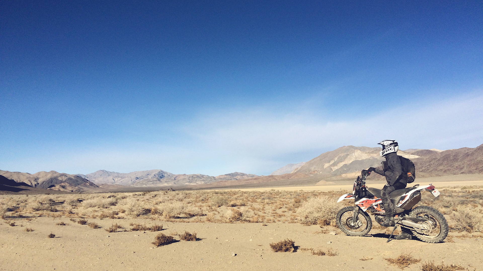 Titus Canyon is a masterpiece of erosion and a perfect place for a motorcycle. A red dirt road leads out of Nevada, past the ghost town of Leadfield, and up into Californian mountains. It’s everything. Switchbacks and wide, yawning corners, sand and gravel and rock. In the summer, deep stone canyons shield you from glaring sunlight and keep the last cold of the night hidden away in the rocks. In the winter, the canyon is cold and dry and stunning—just so long as you’re ahead of the rain. The signs of flooding are abundant in twisted knots of plants flung well up the canyon wall.
