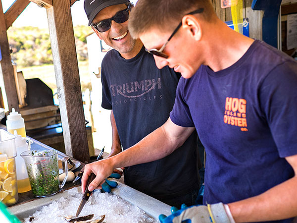 Beau, our Hog Island shucker, shows us the ropes.