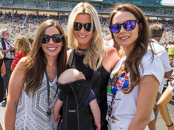 Welcome, race fans. From left: Mrs. Tony Kanaan, Mrs. Ryan Hunter-Reay and Mrs. Scott Dixon—the wives of three IndyCar champs. The little man up front is making a pit stop.
