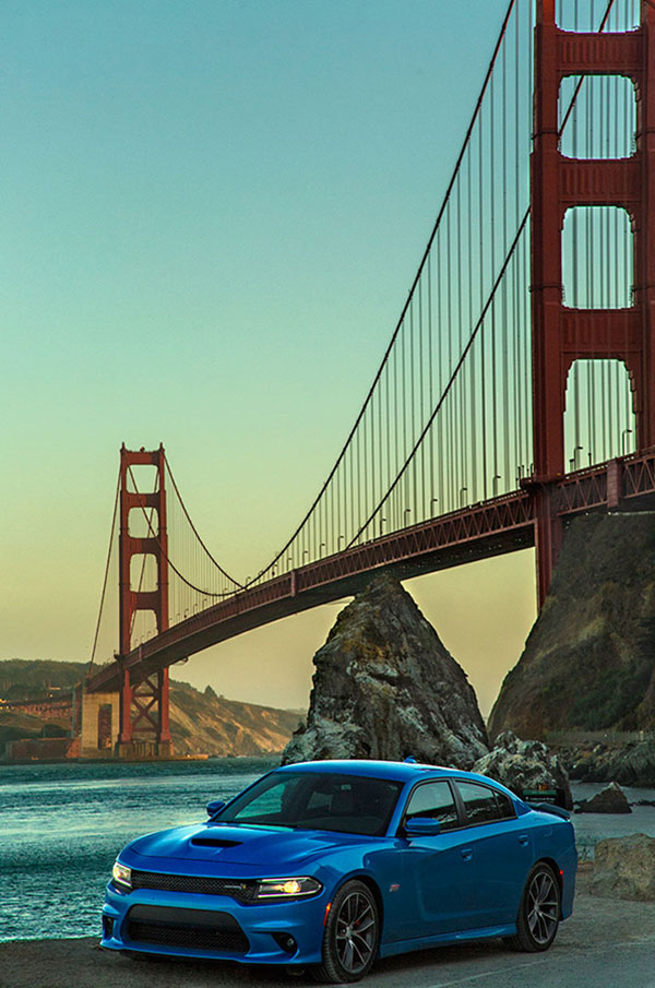 With our road trip nearly over, we stop to give the Charger a little more love. Here it sits at Fort Baker in Sausalito, under the arch of the Golden Gate.