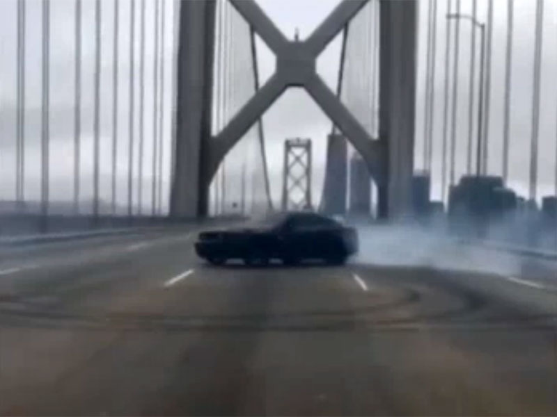 A black Ford Mustang, a white Mustang, and a black Chevy Camaro were reported to police for driving recklessly through traffic at speeds of 80 to 90 mph around 3:30 p.m. Monday on Interstate 80 in the San Francisco area. Once the crew made it onto the Bay Bridge, they stopped traffic and began doing burnouts and donuts in the middle of the congested roadway, KNTV NBC reports.