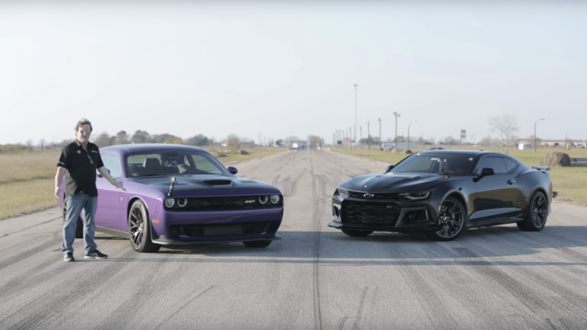 In almost all of the pulls down between the two cars, the Challenger Hellcat manages to squeak out the lead over the Camaro ZL1. At the end of the video, however, head tuner and general power-mad man John Hennessey explains that those results were likely not because the Challenger Hellcat had more power, but more so because the example used in the tests was equipped with an automatic transmission. The Camaro ZL1 the tuning shop tested, on the other hand, came with a a six-speed manual gearbox.
