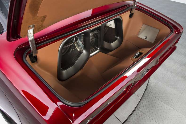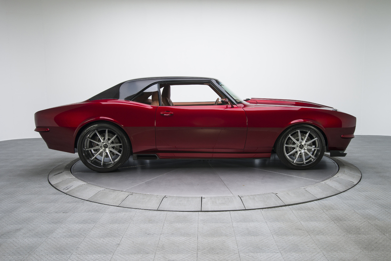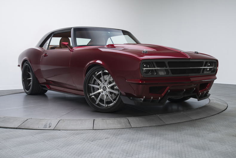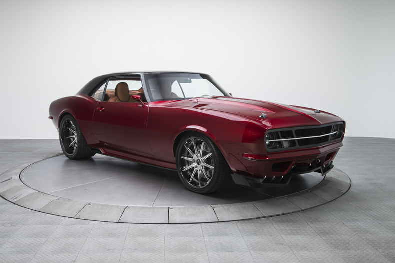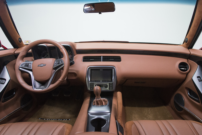 Naturally, the exterior, in BASF Carizzma Ruthless Red paint (and hand-laid carbon fiber roof skin), is really the star of the show. The spec sheet is an understatement of “too much to list,” including a modern Camaro’s interior of upholstered in Connelly tan leather and suede, a full Pioneer/JL Audio sound system, a trick suspension Detroit Speed, Baer brakes, and a set of custom 20- and 21-inch Vellano VKS wheels.
