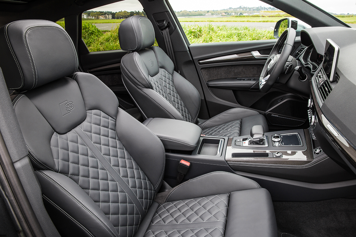 Every version of the new Q5 is built on Audi’s MLB Evo platform—the same basic structure as the A4 and A5. Which means not only does the SQ5 share the S4 and S5’s 3.0-liter hot-vee turbocharged V6, eight-speed automatic transmisson, and quattro all-wheel-drive—it also shares much of its skeleton with those cars, too. You can probably see where this is going: The SQ5 basically drives like a slightly taller S4.
