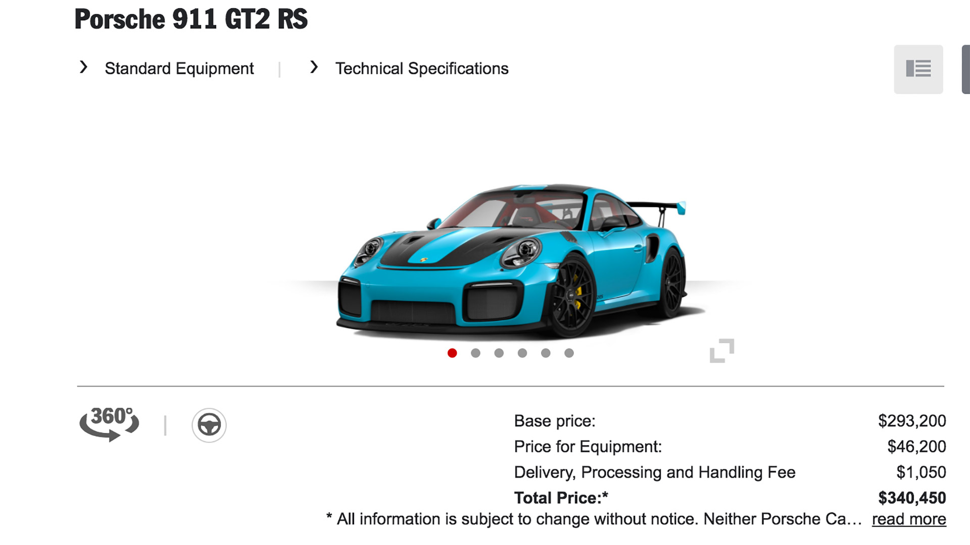 Work motivation on a Friday is always lagging but now that the 2018 Porsche 911 GT2 RS configurator is at, motivation is about to hit an all-time low. The configurator allows users to take the base 2018 Porsche 911 GT2 RS ($294,250) and stretch our legs all the way north of $340,450.