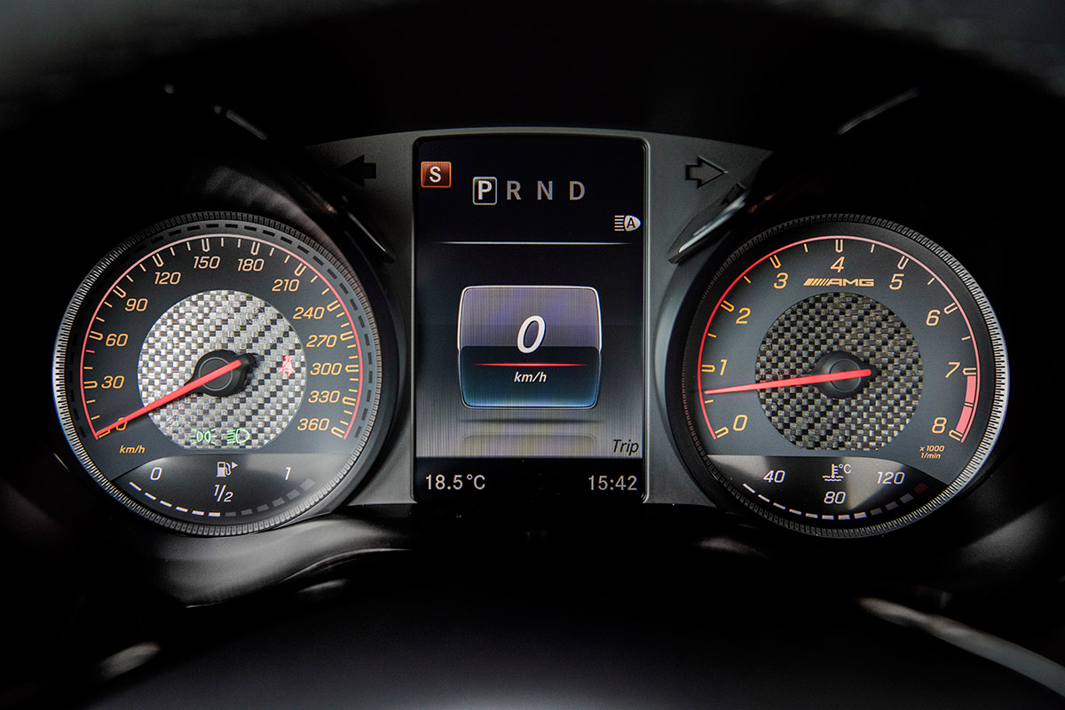 Nevertheless, once you settle into the charcoal-black cockpit, the GT R proves itself a comfortable enough place to cover the miles. You’ll never confuse the AMG Performance seats for the thrones in an S-Class, but their bolstering and padding walk the fine line between long-distance comfort and cornering support. Unlike many Nürburgring track-rat production cars, the GT R doesn’t offer a stripped-down bucket seat option—and it doesn’t need one.