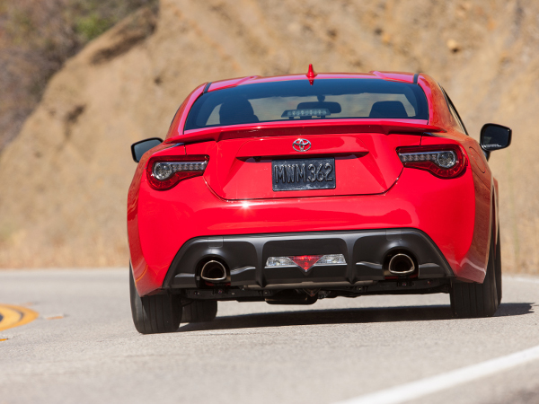 - It’s reductive to boil the Toyota 86 down to being great in the corners and bad in the straights, but at least half of that statement is undeniably true: It’s fantastic in the turns. The car’s 50/50 weight balance is immediately noticeable, and the chassis has a natural tendency to return to center no matter what direction it’s being pushed. My test car was fitted with the optional $639 TRD lowering springs and $550 TRD sway bar kit, which dropped the ride by about an inch, stiffened things quite up a bit, and gave the 86 a devilishly sharp bite.