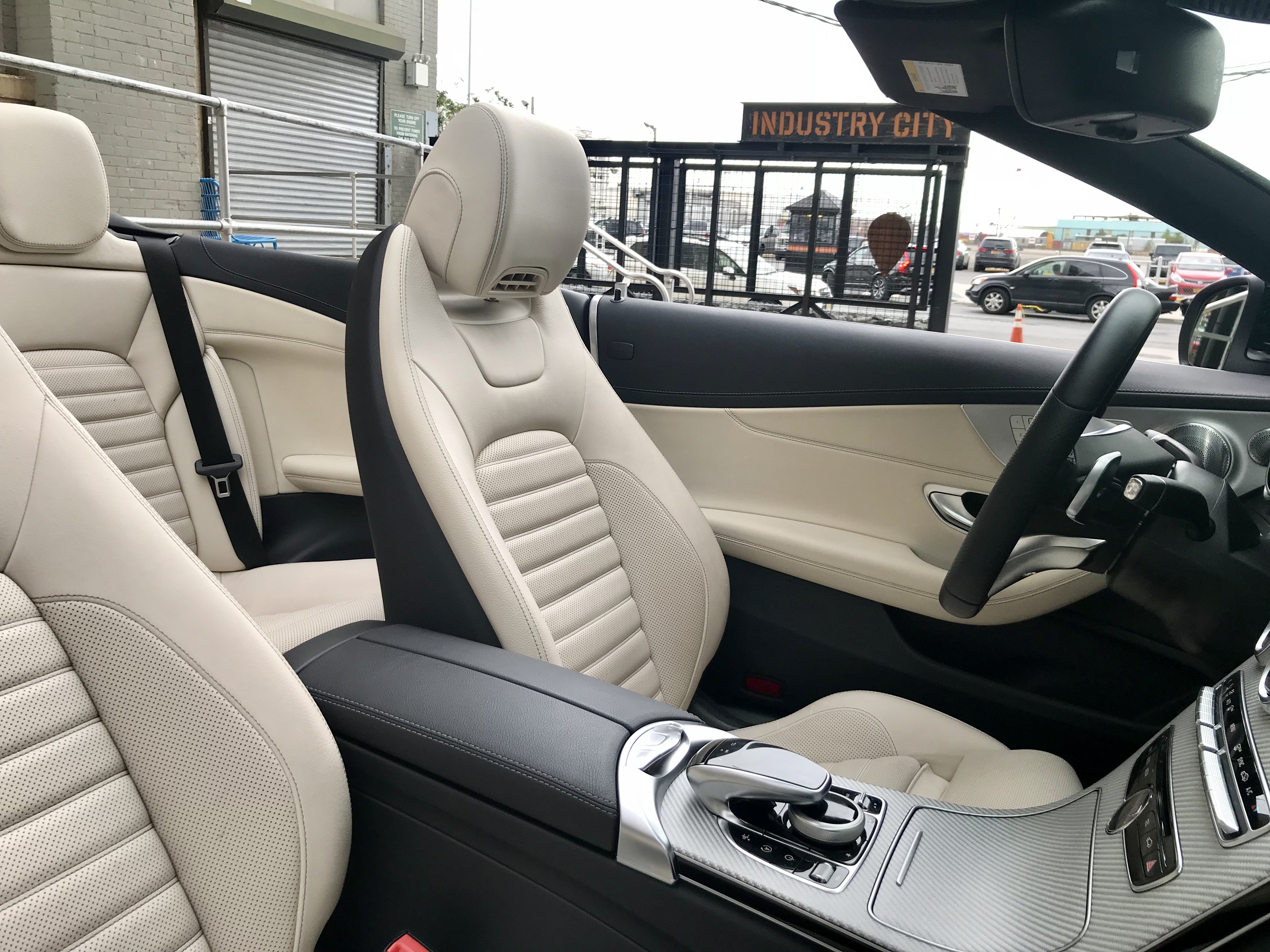 - If you read “cabriolet” and still reflexively hear “compromised handling,” know that automakers have done a remarkable job dialing in convertibles for true hard running. This car gets an AMG upgrade over the C-Class that includes proper sports-car steering (2.1 turns lock-to-lock), a beefier suspension with adaptive dampers, and larger brakes. It felt overly capable on the road, to the point where I kept wondering how it would stand up under proper track duty—not that anyone would, or really should, take this variant to a road course.