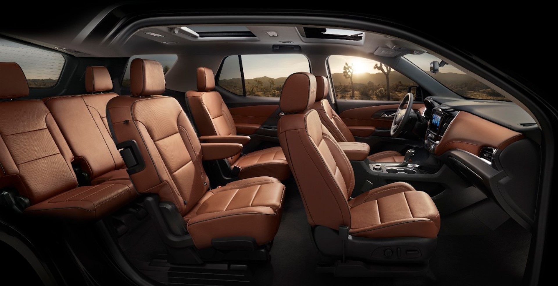 But where the all-new Acadia and Enclave have been downsized, the Michigan-built Traverse actually expands slightly for the latest version, including a two-inch wheelbase stretch to 120.9 inches—just 10 inches shy of the original Canyonero, the Chevy Suburban. This new package carves out more passenger and cargo space than anything in the class—a long roster of minivan alternatives than includes the Honda Pilot, Ford Explorer, Toyota Highlander, and Mazda CX-9. Interior space squeaks past even the enormous Volkswagen Atlas, whether you’re talking space behind the third row, second row, or with all seats folded.