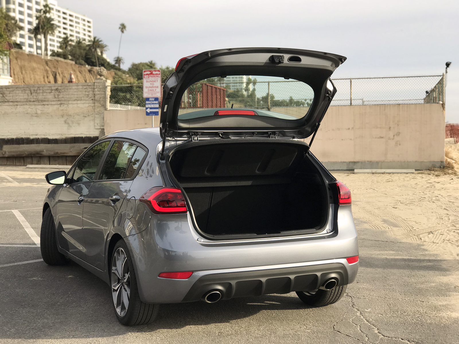 - With that in mind, where does it fit into the warm/hot hatch segment when you start talking price? My tester had an MSRP of $26,125, which works out to be a few thousand dollars cheaper than a comparable VW GTI (though the base model drives just as nice), right on par with a Ford Focus ST, and a bit more than a fully-loaded 2018 Mazda3 Grand Touring. That math is already a little tough, but it’s complicated by the weird pricing structure Kia uses with the Forte5. The top-of-the-line SX model starts at $23,800 with the fancy dual-clutch automatic transmission as standard, while the old-school six-speed can only be had as a single $2,200 option that incorporates a lot of premium interior features as well.