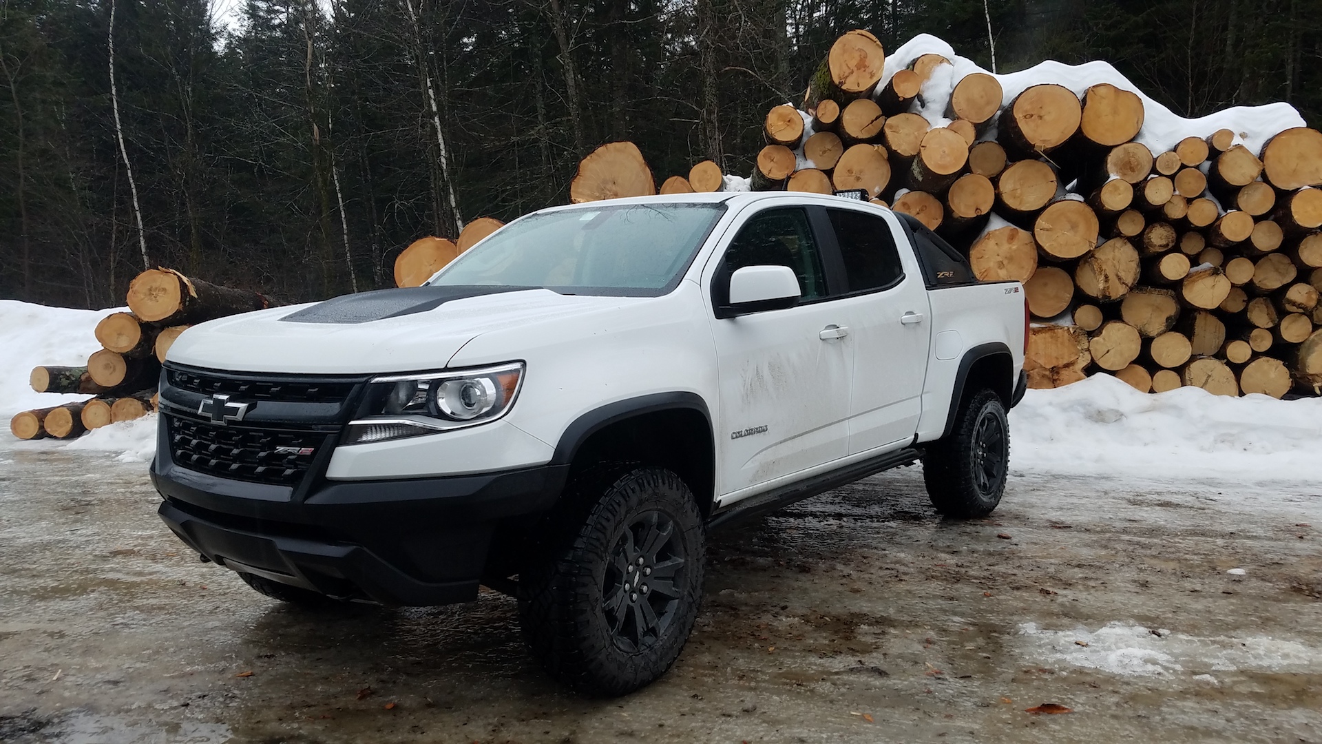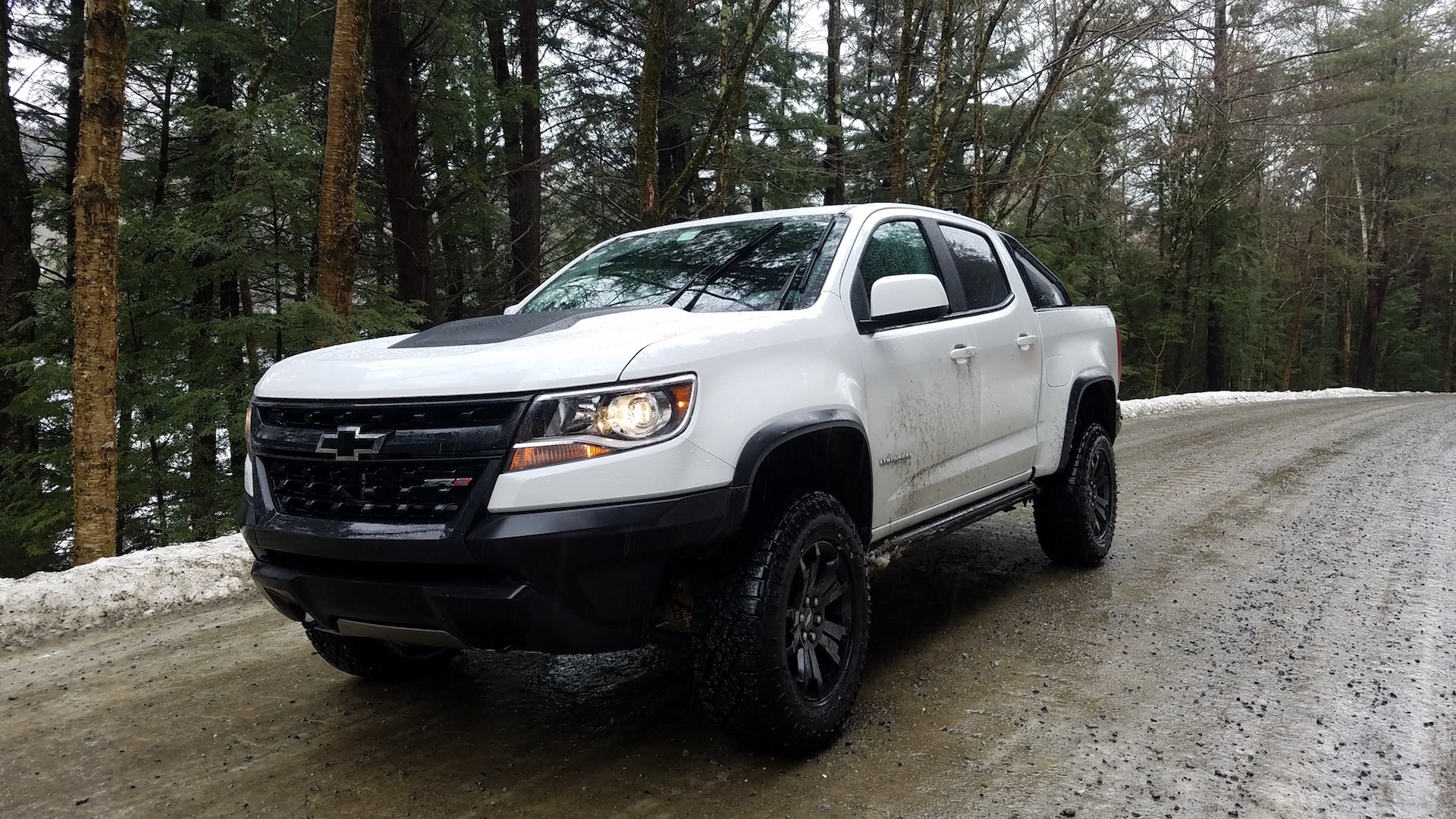 That made a winter weekend in Vermont a piece of cake for the Colorado, even if General Motors’s planned day of guided off-roading wound up canceled due to freezing rain and ice that left trails too treacherous to manage—iced-over slopes being one thing that can foil even a hardcore four-by-four, despite the Chevy’s fairly aggressive, 31-inch Goodyear Wrangler Duratrac tires on 18-x-7-inch black aluminum wheels. Instead, my friend Eric and I loaded up the ZR2, climbed aboard and headed to Stratton Mountain for skiing.