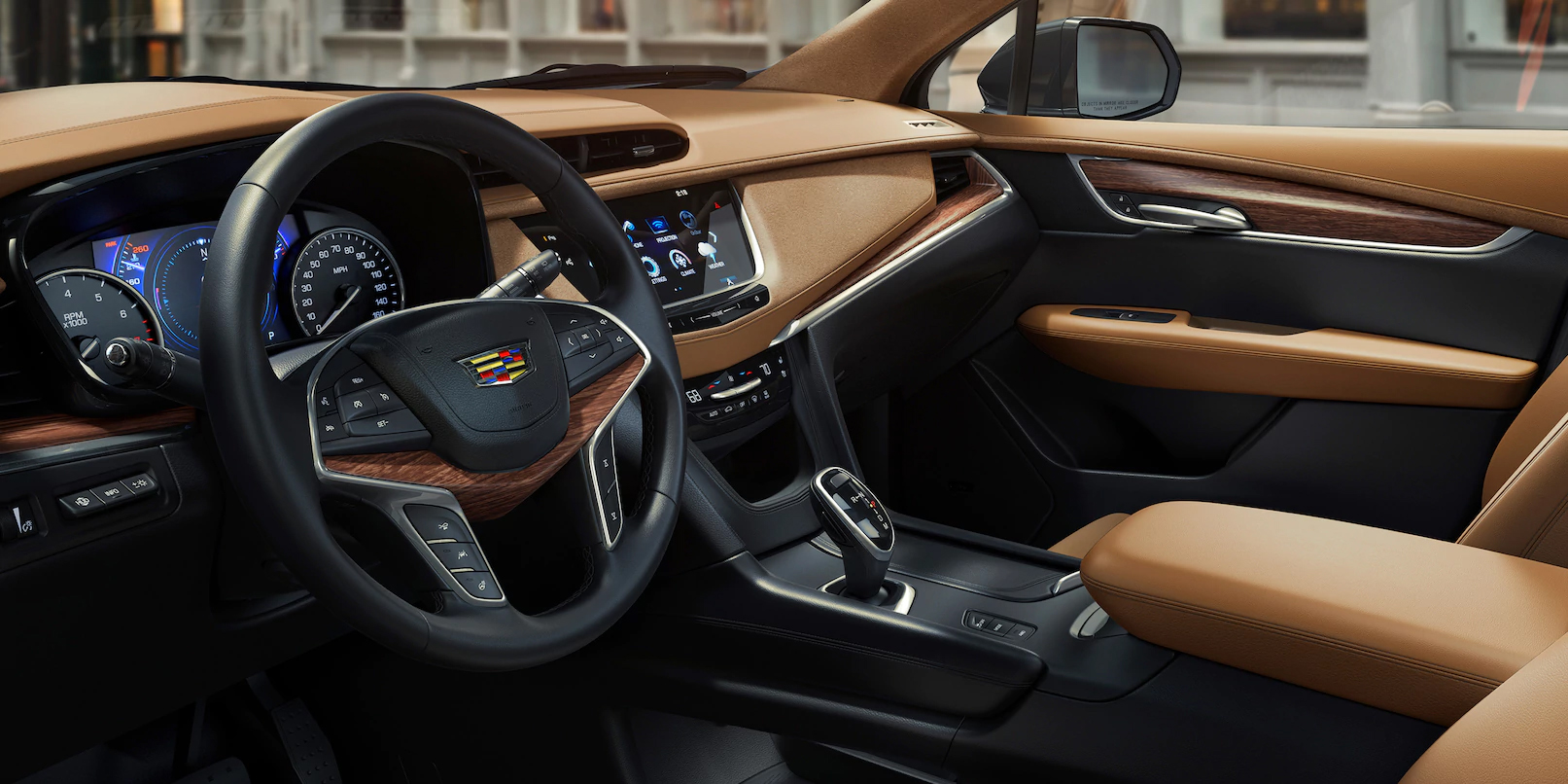 That said, on-dash notifications in the XT5 became a sci-fi spectacle, thanks to its hologram-like windshield display that helps the driver keep his eyes on the road. This feature shows up in plenty of other premium vehicles, and even some cheaper ones—but I was pleasantly surprised by how well Caddy’s head-up display functioned and how customizable it was, even when compared to its European competition. In addition to the HUD, it’s easy to appreciate Caddy’s upgraded gauge cluster behind the steering wheel, which makes all the important info available at a glance. Its dynamic center display is a useful addition to the instrumentation…but I couldn’t help but feel the XT5 would be better served were the screen not been sandwiched between the large analog speedometer and tachometer.