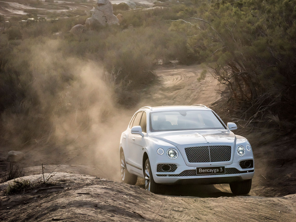 At the launch of the world’s most expensive SUV in Palm Springs, the $230,000 truckster was, quite literally, the elephant in the room. Yes, it features all of the styling cues of a contemporary Bentley, ticked off from a PowerPoint checklist by design director Stefan Sielaff. Sharply creased rear haunches, chunky chromey door handles, gaping ovoid exhaust tips, B-shaped taillights and fender vent, staggered quad headlamps, woven-plastic chain-mail grille. But in the flesh, on the road, the Bentayga lacks presence. It is an occasion car, without an occasion.