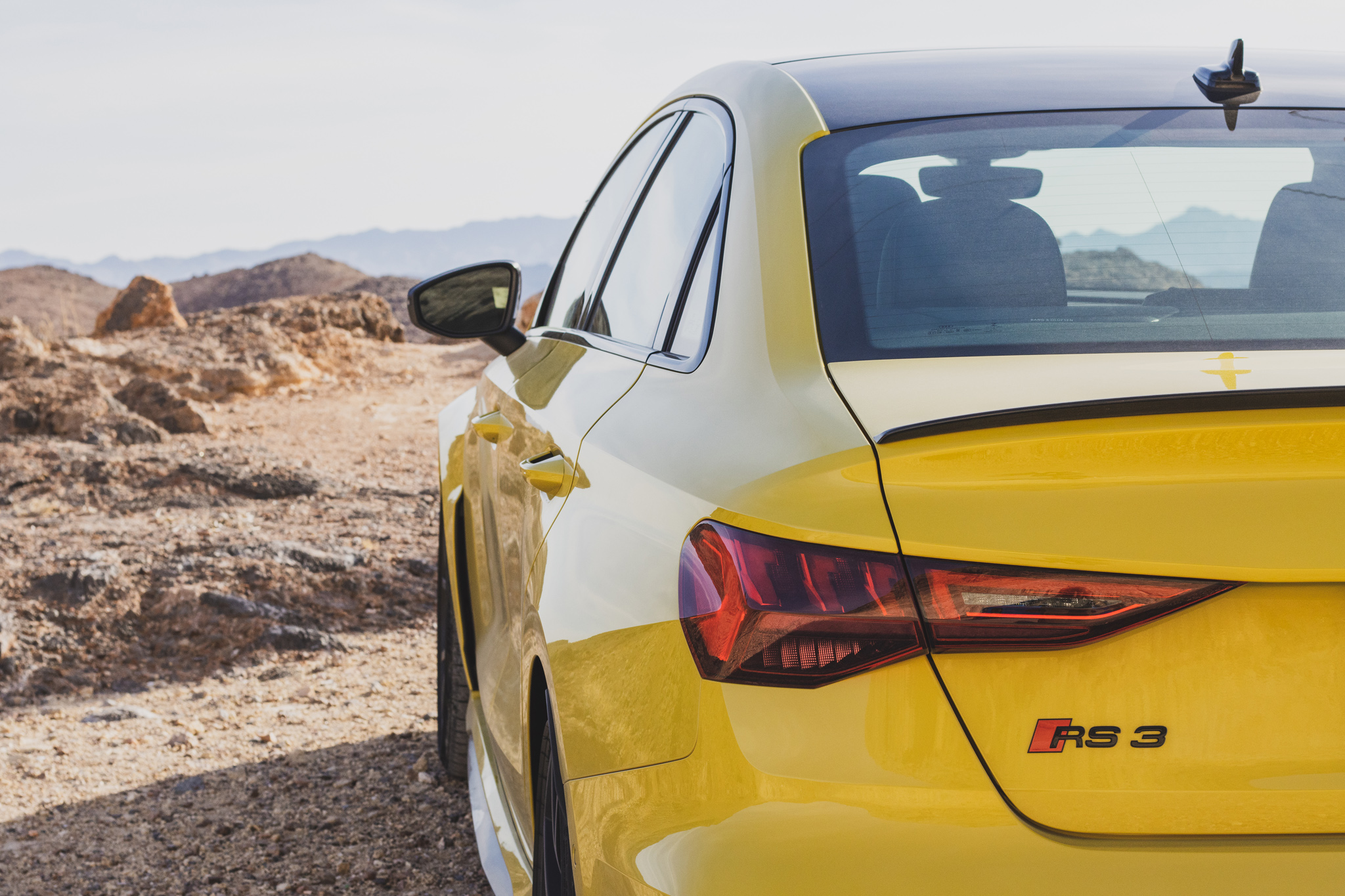Put the 2022 RS3 on an empty desert highway and three things are apparent. One, it’s shockingly smooth and composed at high speeds—any German worth its salt should be, but this is still a tightly wound compact sedan. Two, the engine remains an absolute peach, with a bit of old-school turbo lag out of the gate offset by a linear power curve that pulls straight up to the redline and the same wonderful noise ripping through the optional RS Sport exhaust. And three, the drive modes absolutely make a difference, altering the car from a comfortable highway miler to an eager, almost tail-happy sports car when you start dipping into the RS settings.