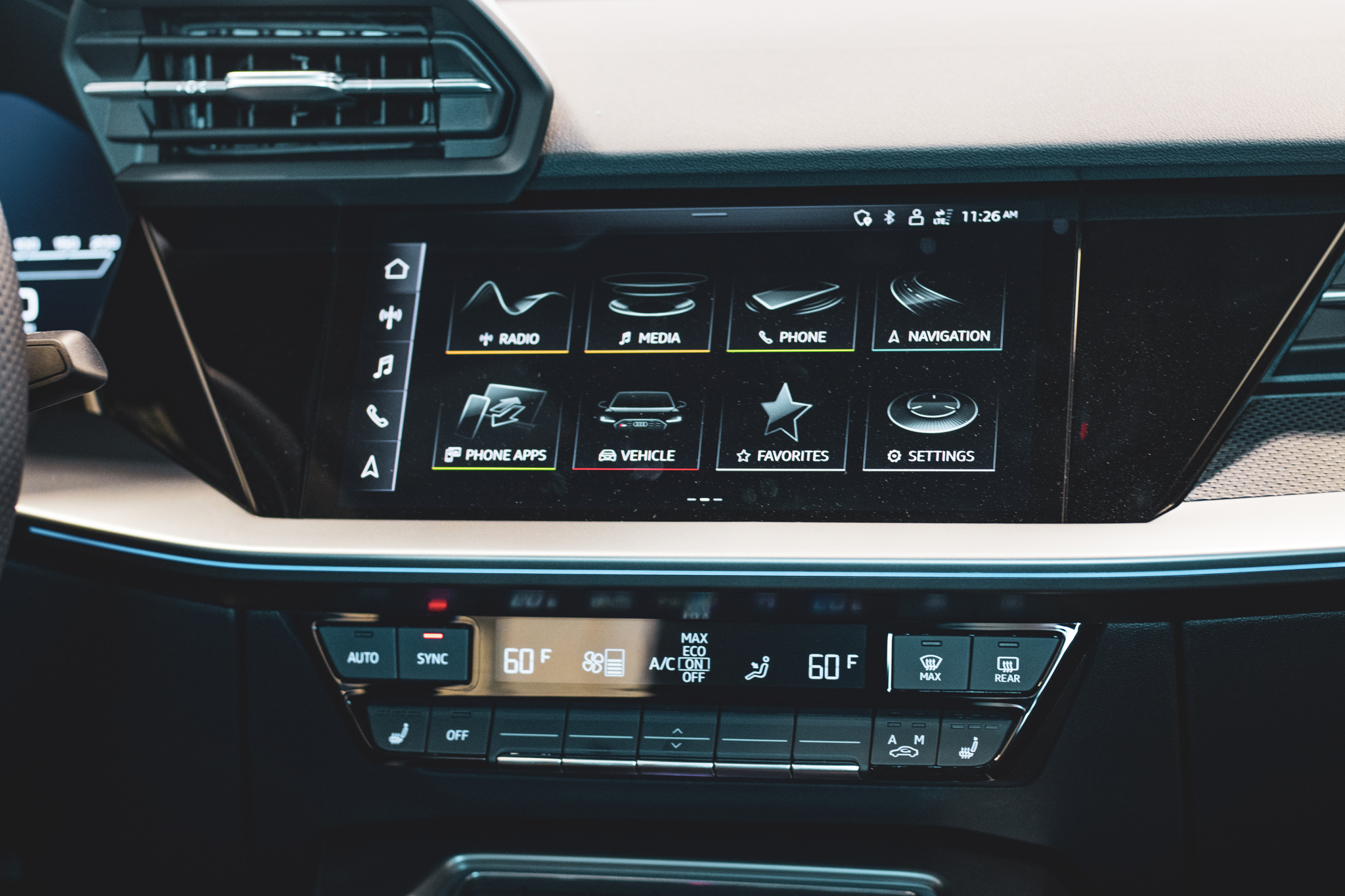 Though it’s built on the fourth-gen A3 platform, a more instructive starting place for discussing the Audi RS3 is the current VW Golf R. That’s where the torque-splitting rear end showcased in the RS3 made its debut, and it must be said—perhaps if the Golf R also came with a 401-hp five-cylinder, people would shut up about the infotainment controls and focus their attention on the drive. Torque splitting, or torque vectoring (or whatever you want to call it, language is malleable) isn’t a new concept in performance cars, but the RS3 takes it to new heights for Audi.