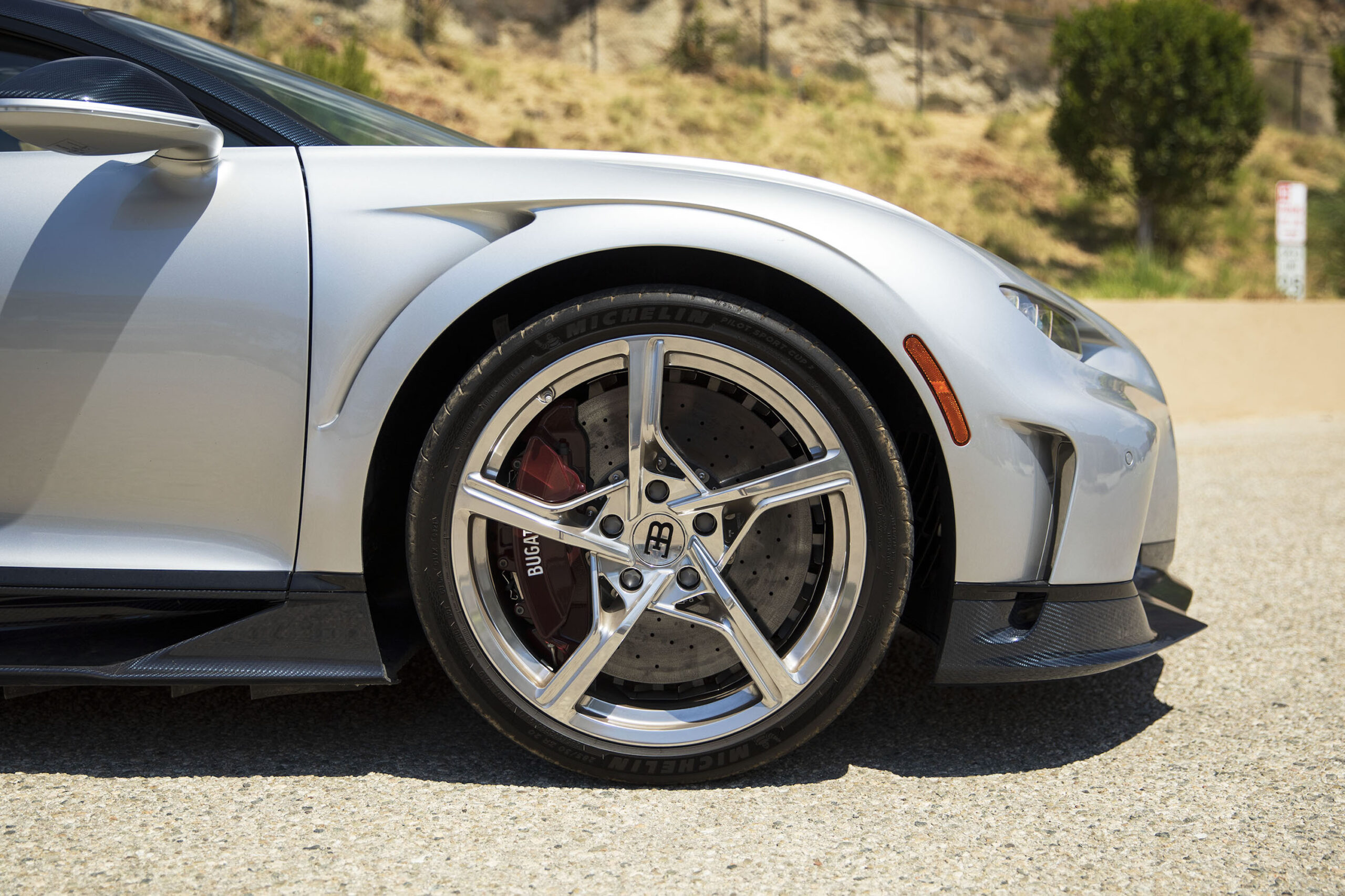 Gone is the Pur Sport’s big rear wing, which added a significant amount of downforce for more mechanical grip at circuit speeds, but also the substantial aerodynamic drag that played a key role in the Pur Sport’s top speed of “just” 217 mph. Along with the nine air holes on each front fender, which serve as an aesthetic nod to the EB 110 Super Sport while also reducing high-speed lift, the Chiron Super Sport features a reworked rear diffuser design that’s aimed at providing enough downforce at high speeds to keep the car stable without creating unnecessary drag that would hold the car back on the top end.