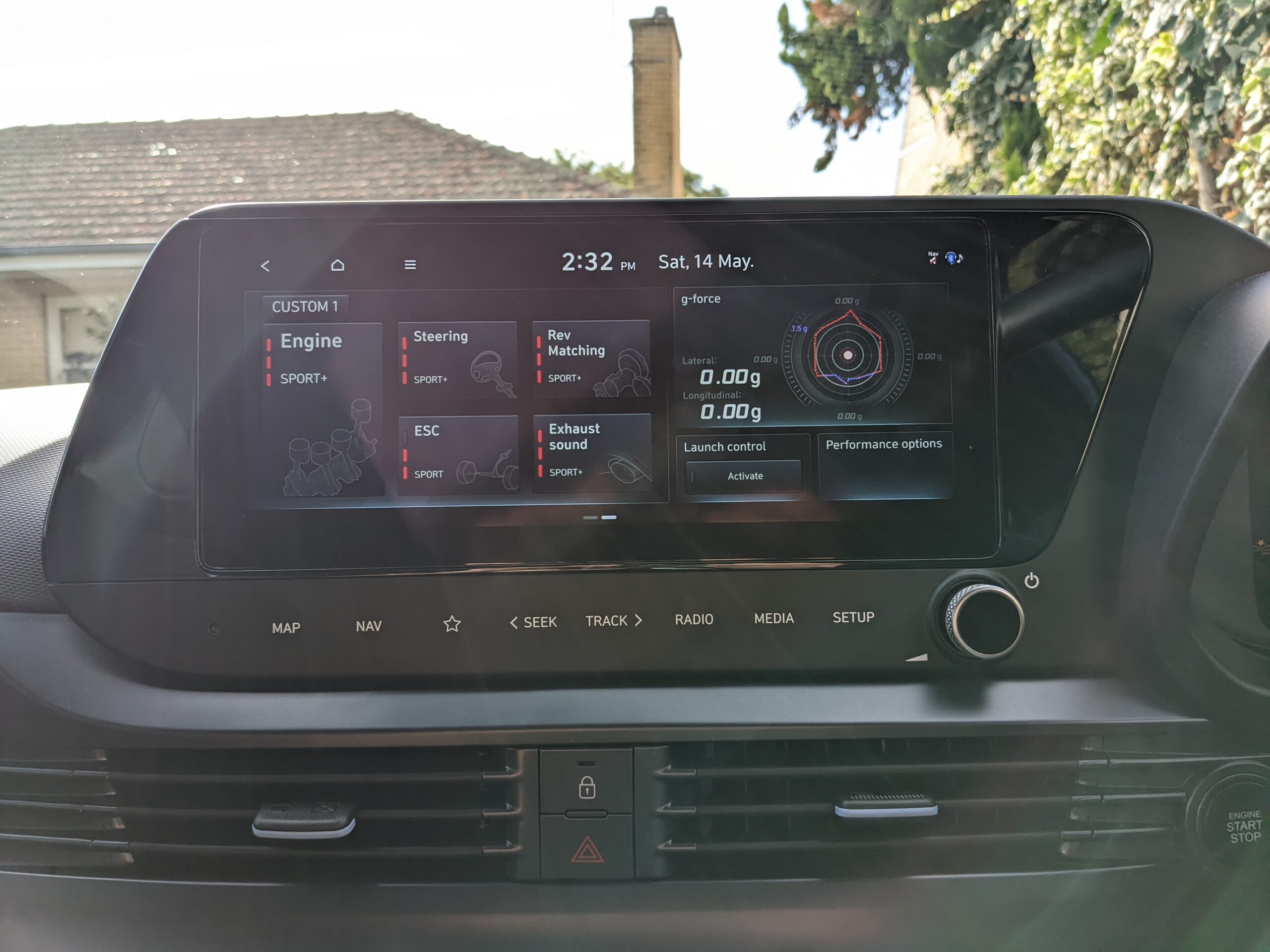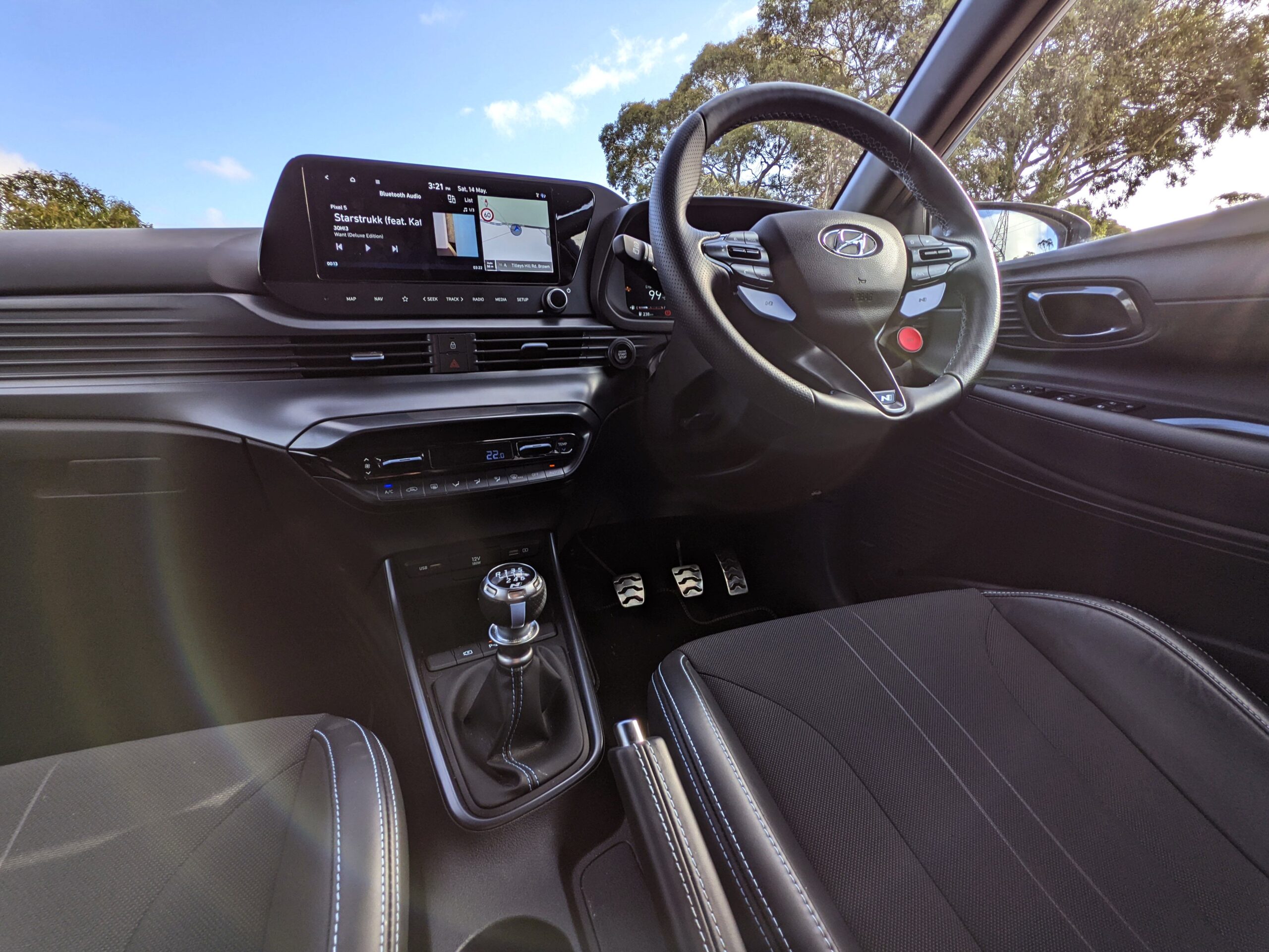 Inside, the i20 N is well-appointed, with materials and finishes that feel right for a hot hatch. There aren’t any major missteps like slippery leather seats or obviously cheap plastics that fall to hand. The seats are perfect for hugging you in the turns, though larger-bodied drivers would do well to check they’re comfortable before committing to the purchase.
