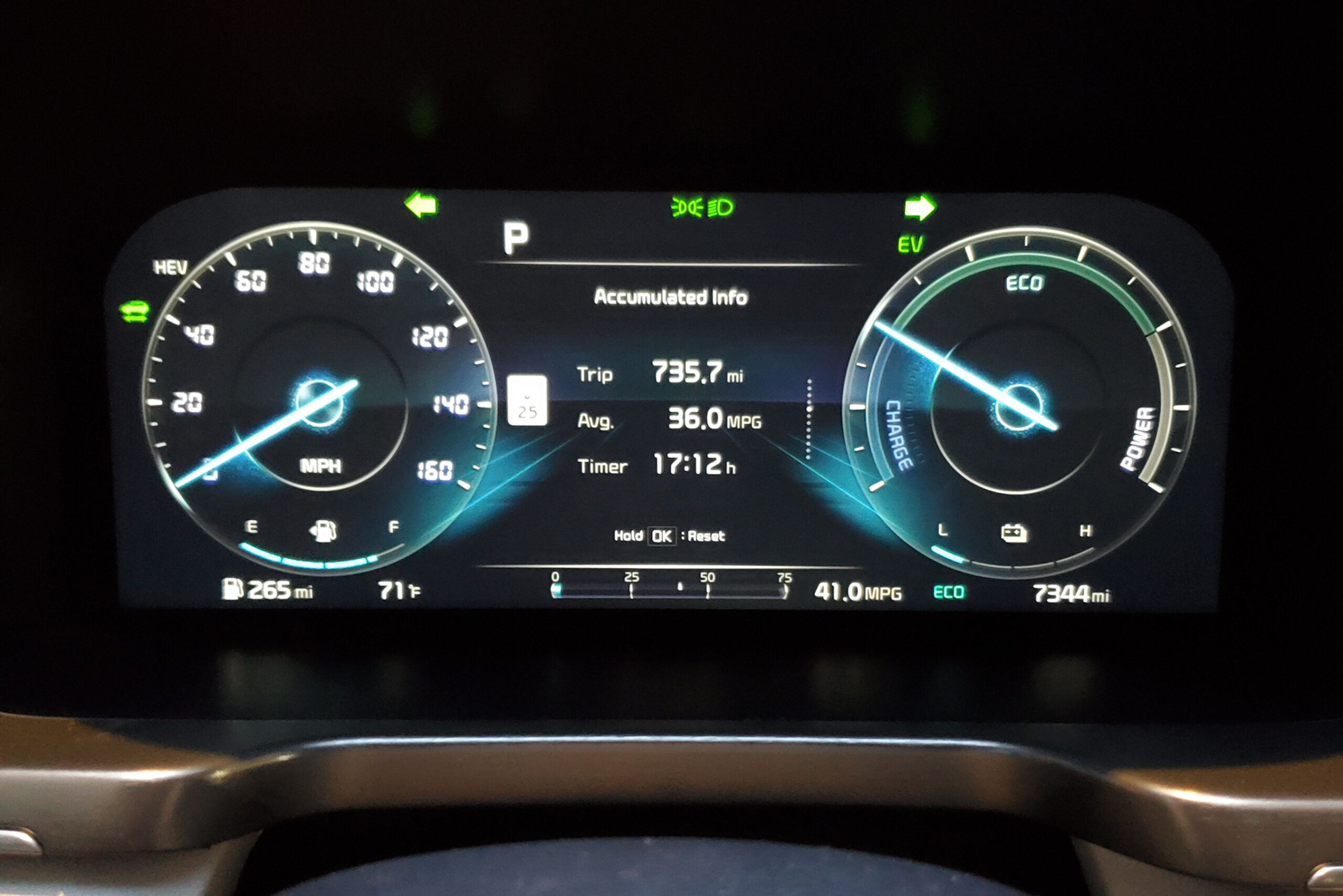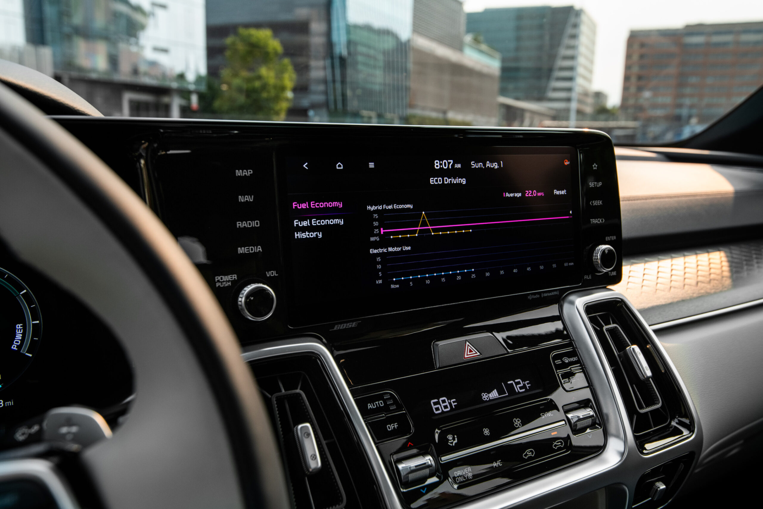 The available power on tap was perfectly adequate to get the plug-in Sorento moving, whether that was merging onto highways or passing slower traffic. For long-distance stints, I found myself relying heavily on the car’s excellent Highway Driving Assist adaptive cruise control system. From a user perspective, it was essentially the same system I previously used in the Genesis G80 sedan. Lane-keep positioned the car perfectly in the center of its lane and could “see” all the traffic around it—even cars in adjacent lanes. This was big, because even when other drivers merged suddenly or cut us off, they never spooked the car and caused it to abruptly slam on its brakes. The system always maintained a safe distance from all the other traffic.
