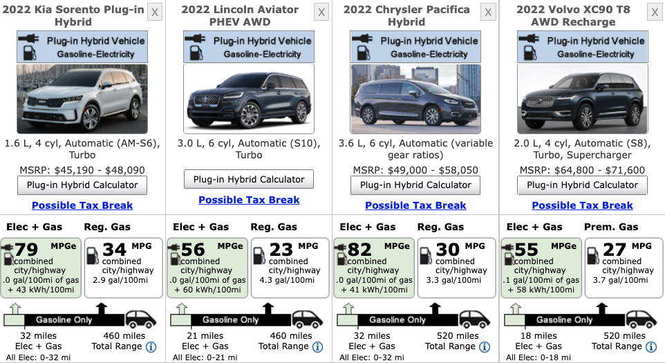 Update 12:09 pm ET: An earlier version of this review neglected to mention the three-row Mitsubishi Outlander PHEV. The story has since been updated.