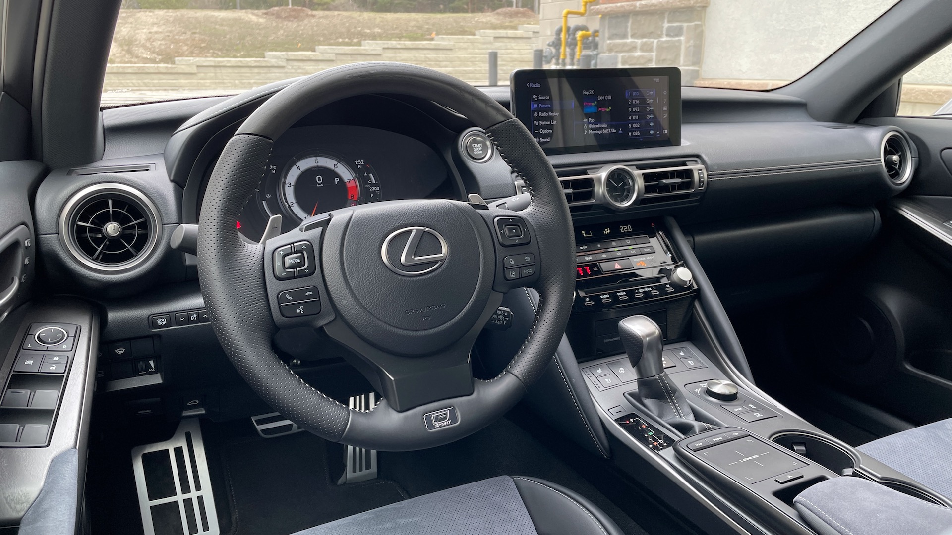 A Torsen limited-slip differential is standard while brakes—14.0- and 12.7-inches front and rear with additional cooling compared to the IS350—never feel fussy. Ditto re: the Adaptive Variable Suspension which is never harsh but, like, unexpectedly communicative. I could feel little cracks and even paint markers in the road but at the same time, it’s a cushiony champ over speed bumps and potholes.