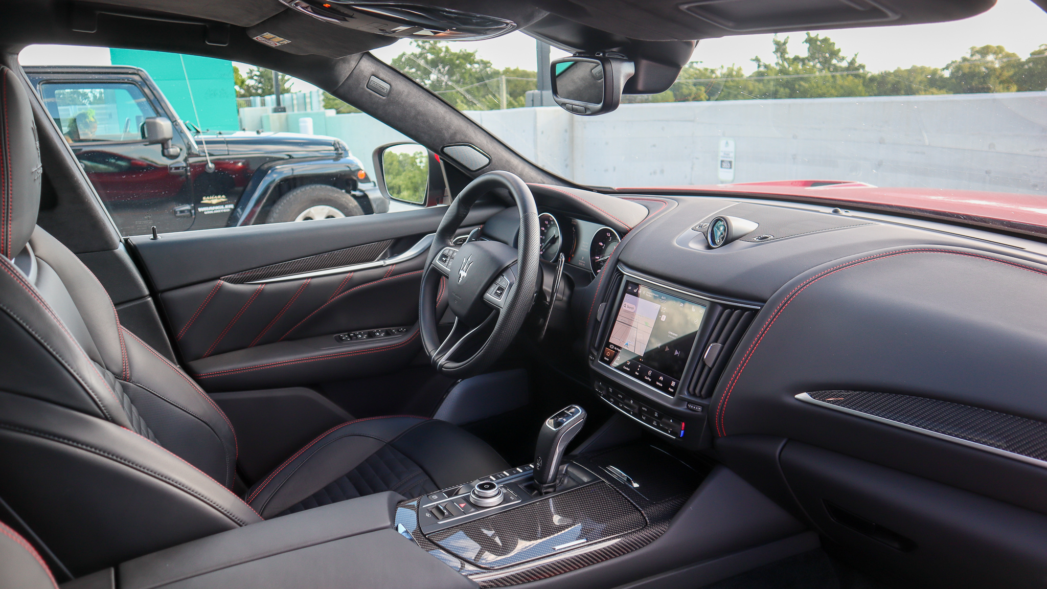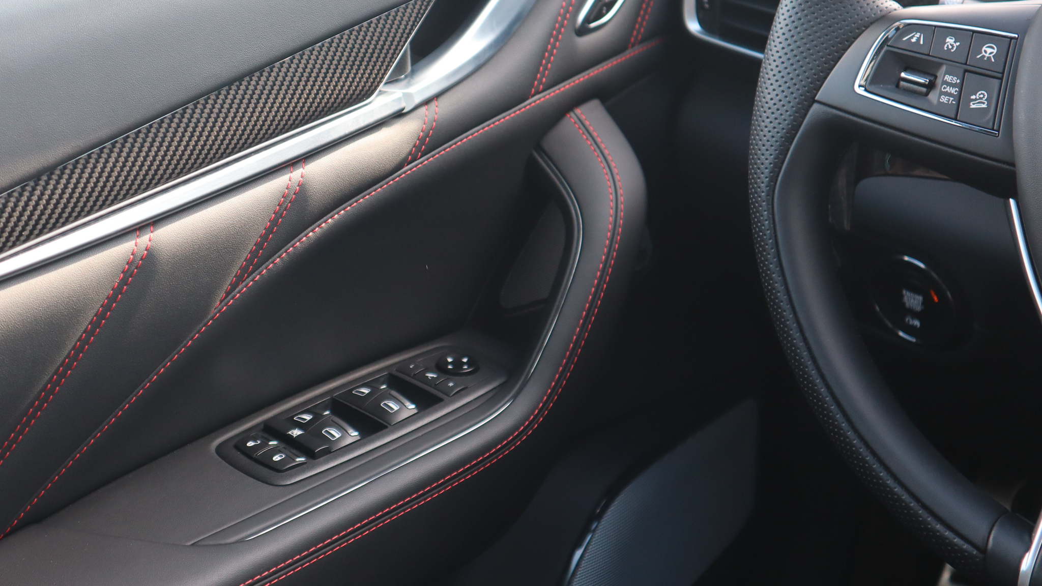The Levante is littered with pre-Stellantis touchpoint relics. The door switches, engine start button, headlight toggles, and other bits and pieces are identical to any 2008-and-up Dodge Grand Caravan. The infotainment layout, although supposedly brand new for 2021, looks like a reskinned version of the Uconnect system you’d find in, say, a Jeep Renegade. The Renegade’s, er, Levante’s infotainment is snappy and easy to use, but decidedly basic compared to Merc’s MBUX, BMW’s iDrive, or the screen in a Tesla. The setup works, but where’s the verve? Where’s the fanfare? Where’s the uniqueness and drama? Manufacturers are constantly trying to outdo each other, with setups that have voice control, gesture control, beautiful animations, and graphic design that explores the limits of touchscreen technology. By contrast, the Levante’s interface—full of square buttons with no pizzazz—feels almost like Windows 98 in an iPhone world.