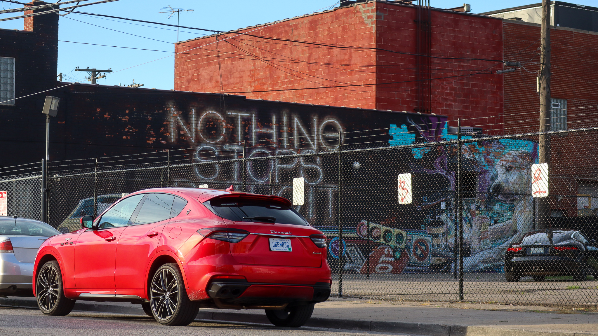I tootled my chosen parents around the Detroit metro area in it, letting them soak in the aura of the Levante. Whilst driving to Buddy’s Pizza, I looked over at my dad—who was taking in the ambiance of the interior. The dash is coated in soft-touch leather with red stitching. The headliner and roof pillars are coated in Alcantara. All four seats are lined in high-quality natural leather that look and smell premium. “How much does this thing cost?” he asked while caressing the passenger door panel.