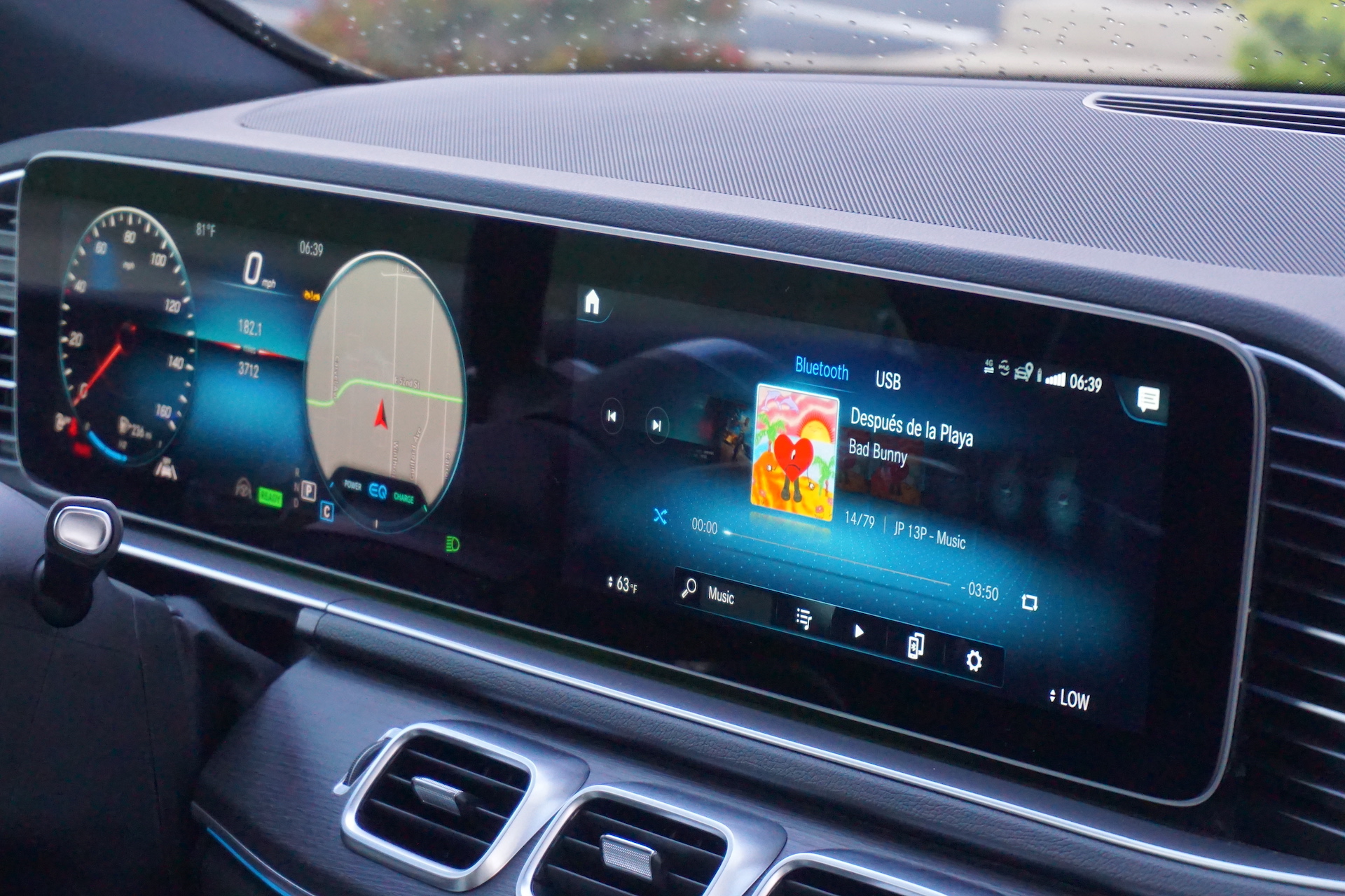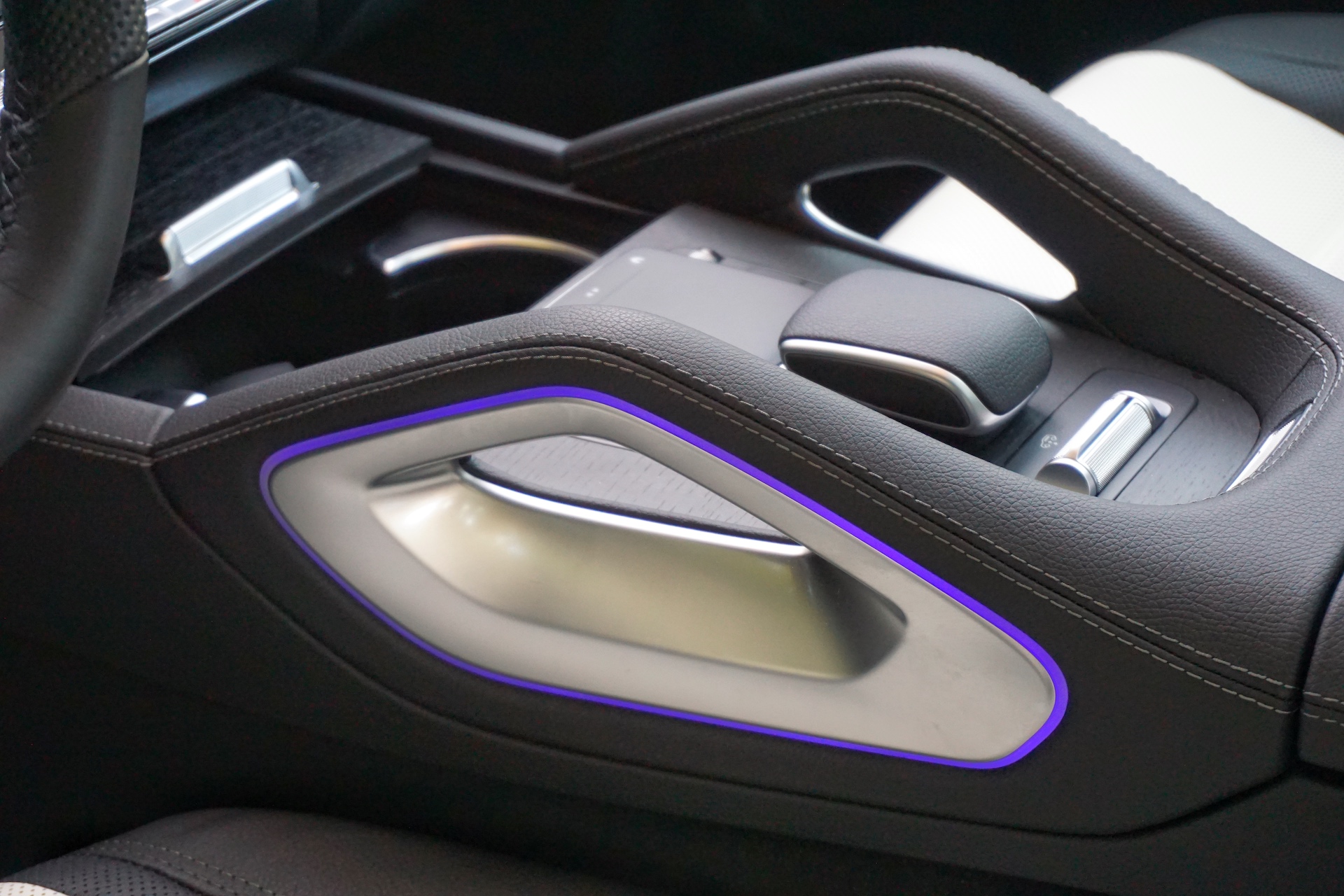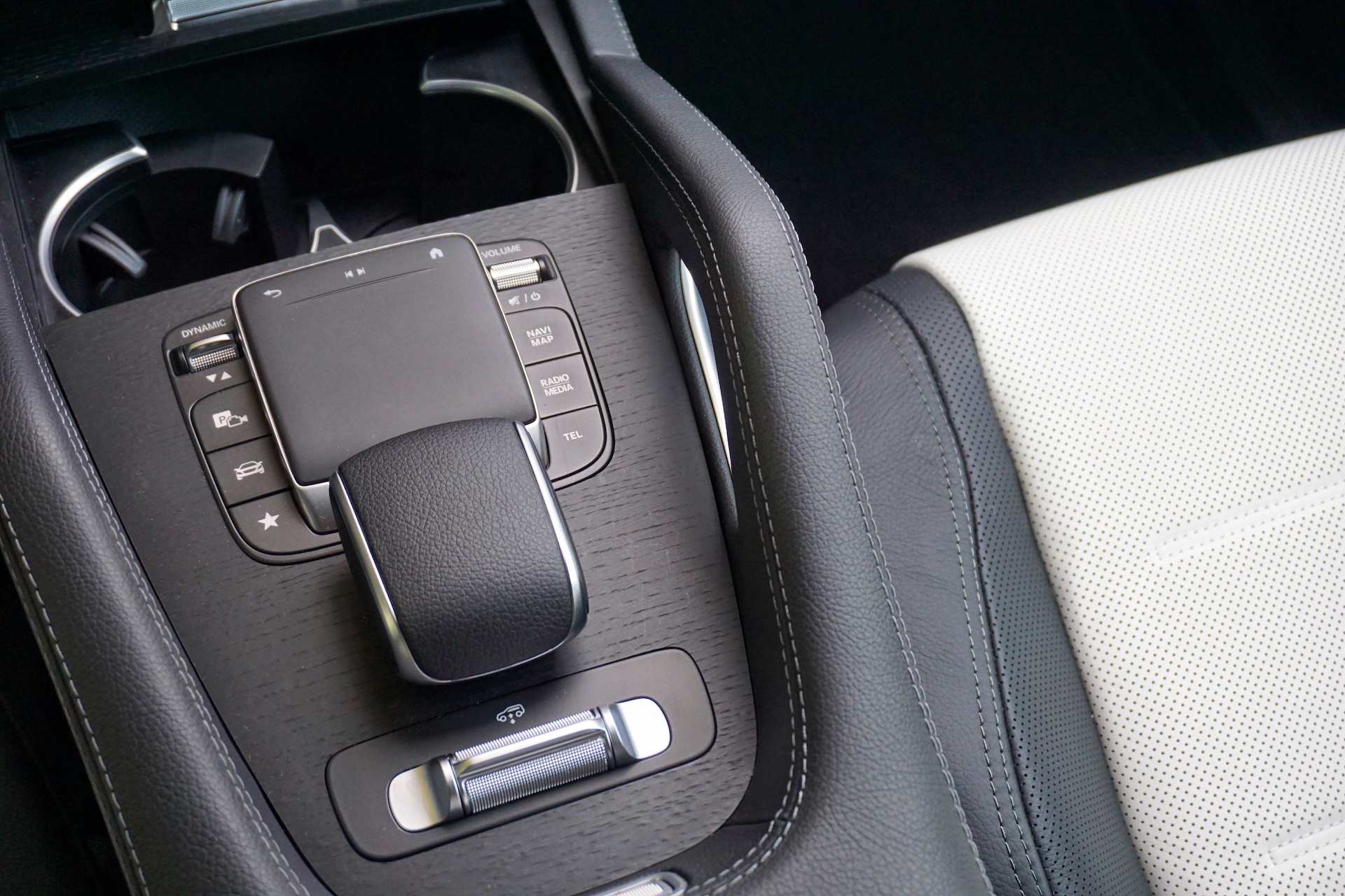 In terms of interior design, the GLE is down with the concept of “less is more.” A digital dash houses two separate 12.3-inch screens built into one surfboard-style housing, making it look like one huge screen. It’s no Hyperscreen, but it still looks cool. The center stack is clean and uncluttered, with just four air vents and a thin row of hard buttons for the climate control. Down below you’ll find two cup holders, the MBUX trackpad, as well as several shortcut buttons for the radio, navigation, phone, and more. The layout not only looks good, but the trackpad and its surrounding buttons work flawlessly.