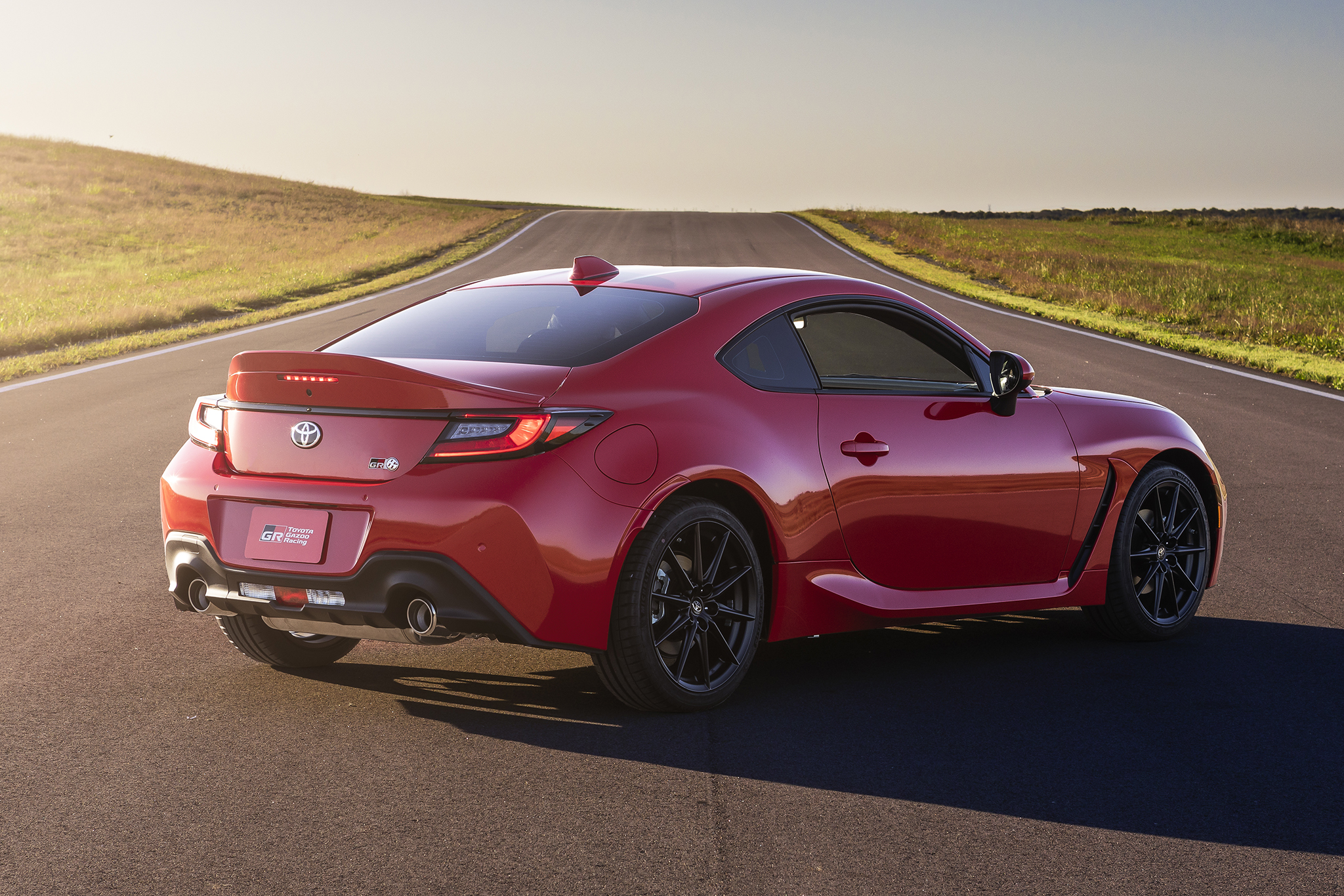 The Mazda MX-5 Miata has the advantage of a convertible top and better gas mileage, but lacks cargo space and a back seat. The compact Hyundai Veloster N includes more horsepower and an optional eye-catching shade of blue paint, complete with matching seat belts. However, it’s front-wheel drive and has more of a hatchback look than a sports car vibe; the rear-wheel-drive GR86 is sleeker, evoking a cat on the prowl. The GR86 also competes with the Ford Mustang, which has heritage, nearly endless accessory options, and a ton of trim variants to choose from. Of course, there’s also the Subaru BRZ, though it seems like that car goes for a bit of a different vibe. More on that below.