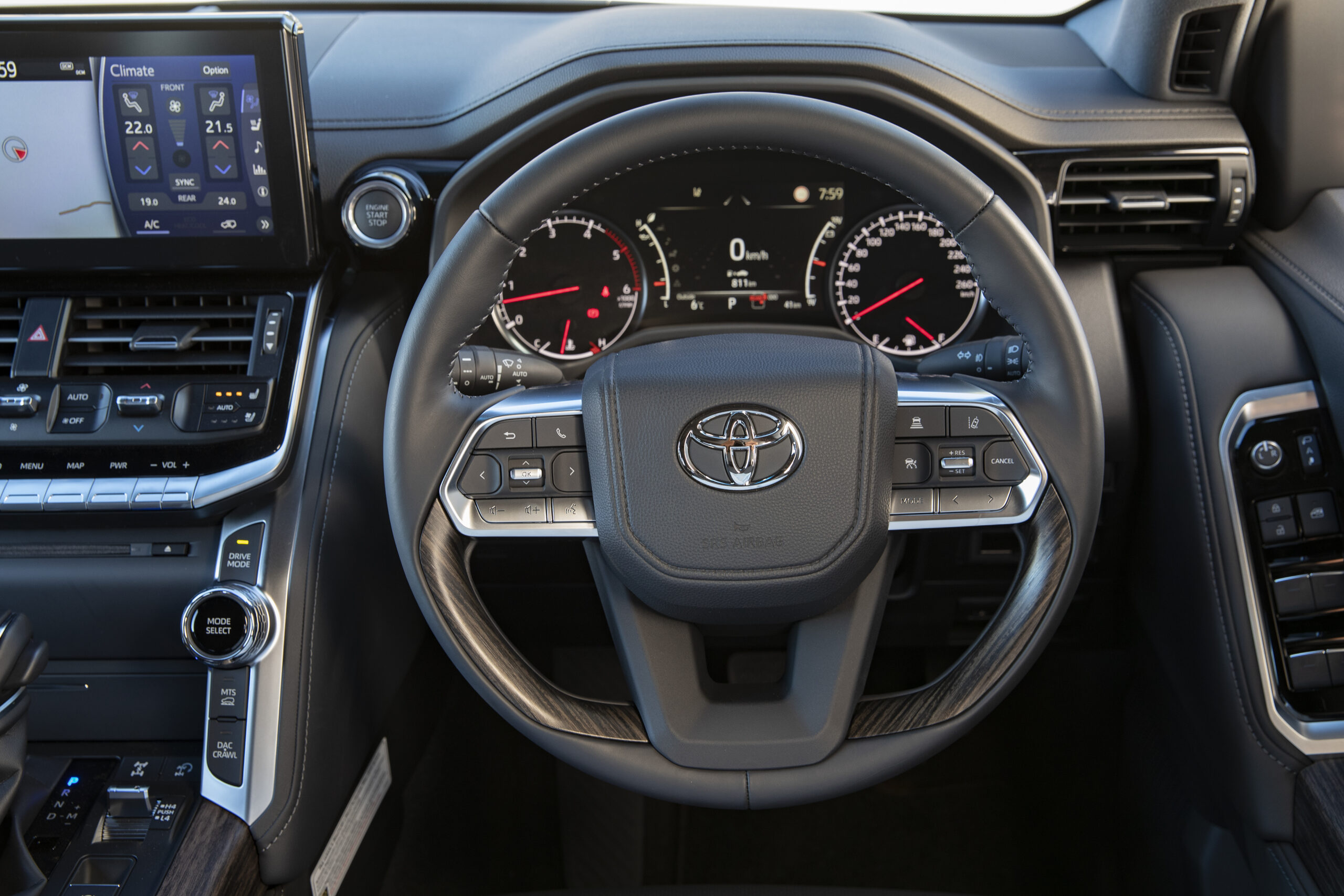 Features like a head-up display, power-lift rear door, and tire pressure sensors are available on higher-tier models, but you’ll pay for them. The best-equipped trims are the Sahara ZX ($146,777) and the off-road-focused GR Sport ($145,737). They also get heated and ventilated second-row seats, driver’s seat memory, and leather-accented seats.