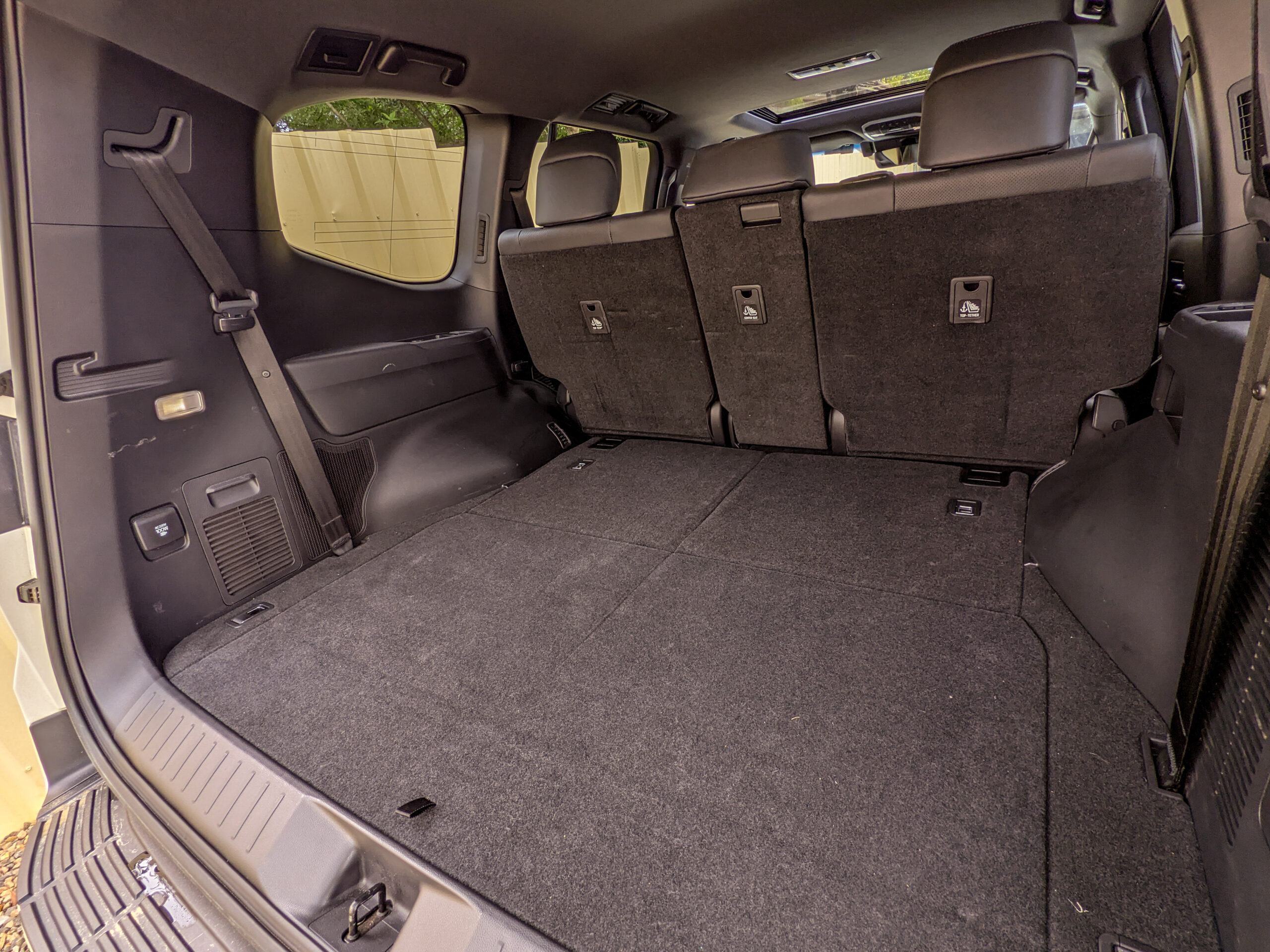 - Maximum 69.5 cubic feet with second and third row folded