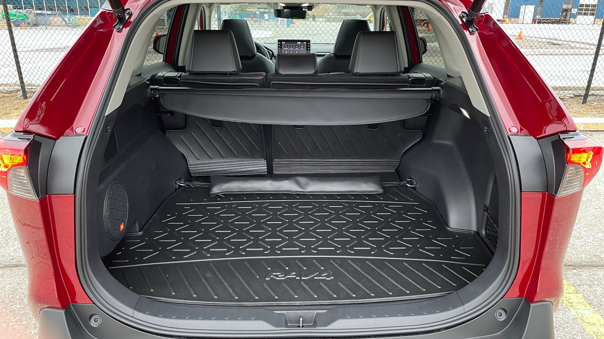 The rear seats fold down very easily in a 60/40 split, giving way to almost 70 cubic feet of cargo room. And Toyota has equipped this crossover with a full-size spare tire instead of making you make do with a sealant and inflator kit.