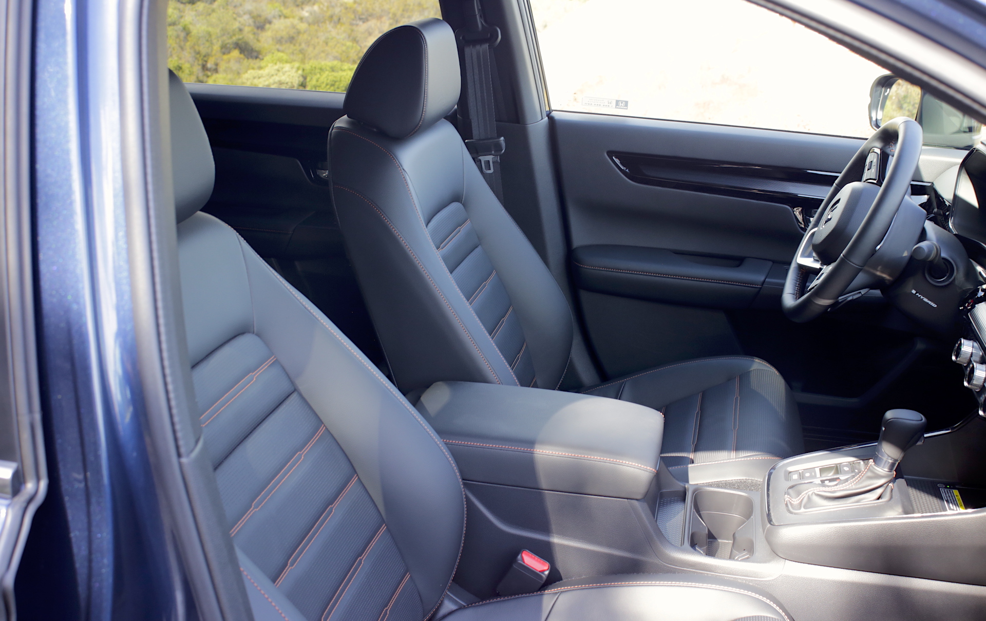 The 2023 CR-V hybrid features a 15 percent increase in structural stiffness, particularly around the floor joints and rear lower section of the body. This is to accommodate the added weight in these areas of the hybrid system, but when complemented with more rigid subframes, as well as MacPherson front and fully independent rear suspension, it makes for a surprisingly fun-to-drive crossover.