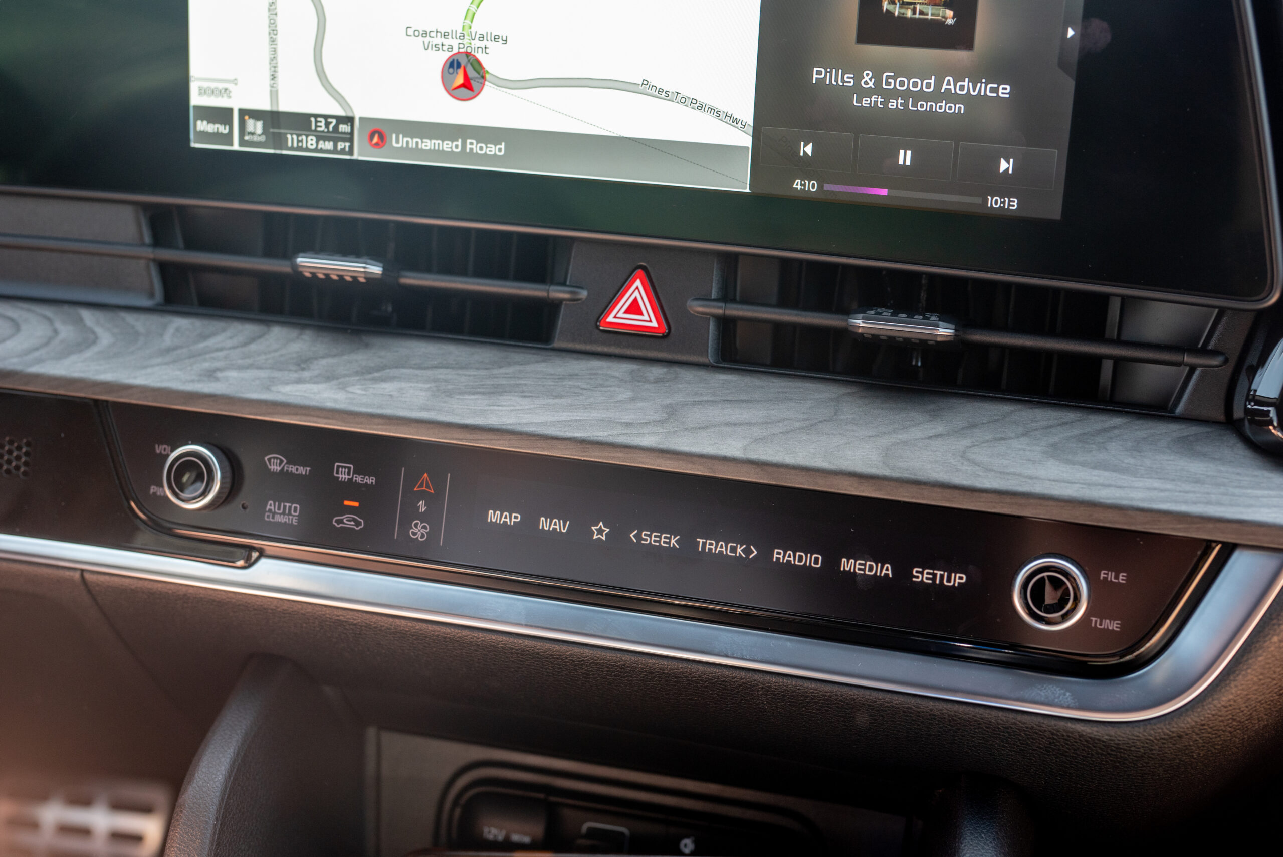 Physical buttons are included for seat climate controls, and knobs for radio and volume control are well-integrated, but Kia’s dual-mode radio/climate control capacitive touch panel had me unknowingly cranking the A/C when I was trying to turn up Left at London on my stereo more than once. With some acclimation, the dual-use panel began to make more sense, but I still would have preferred devoted buttons for each set of features.