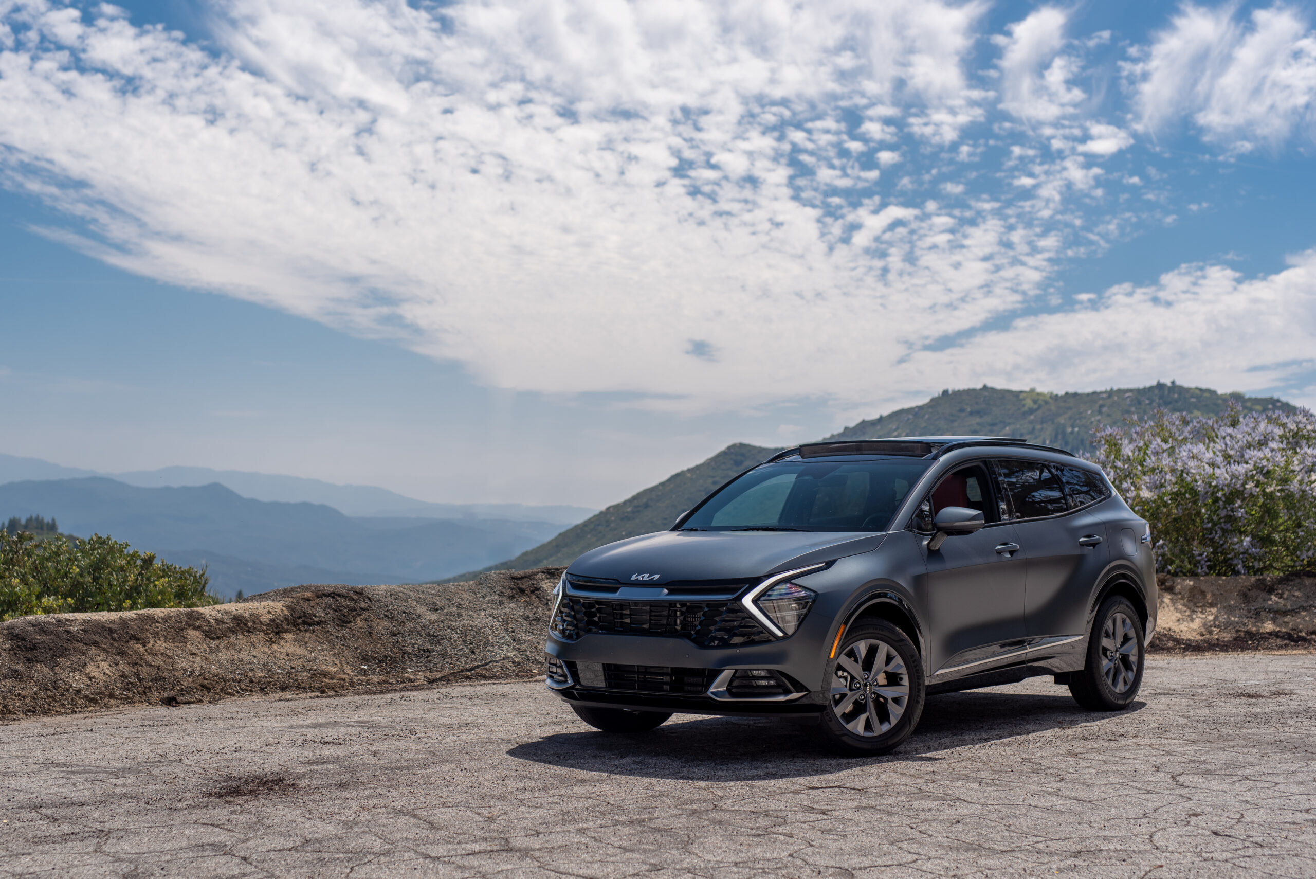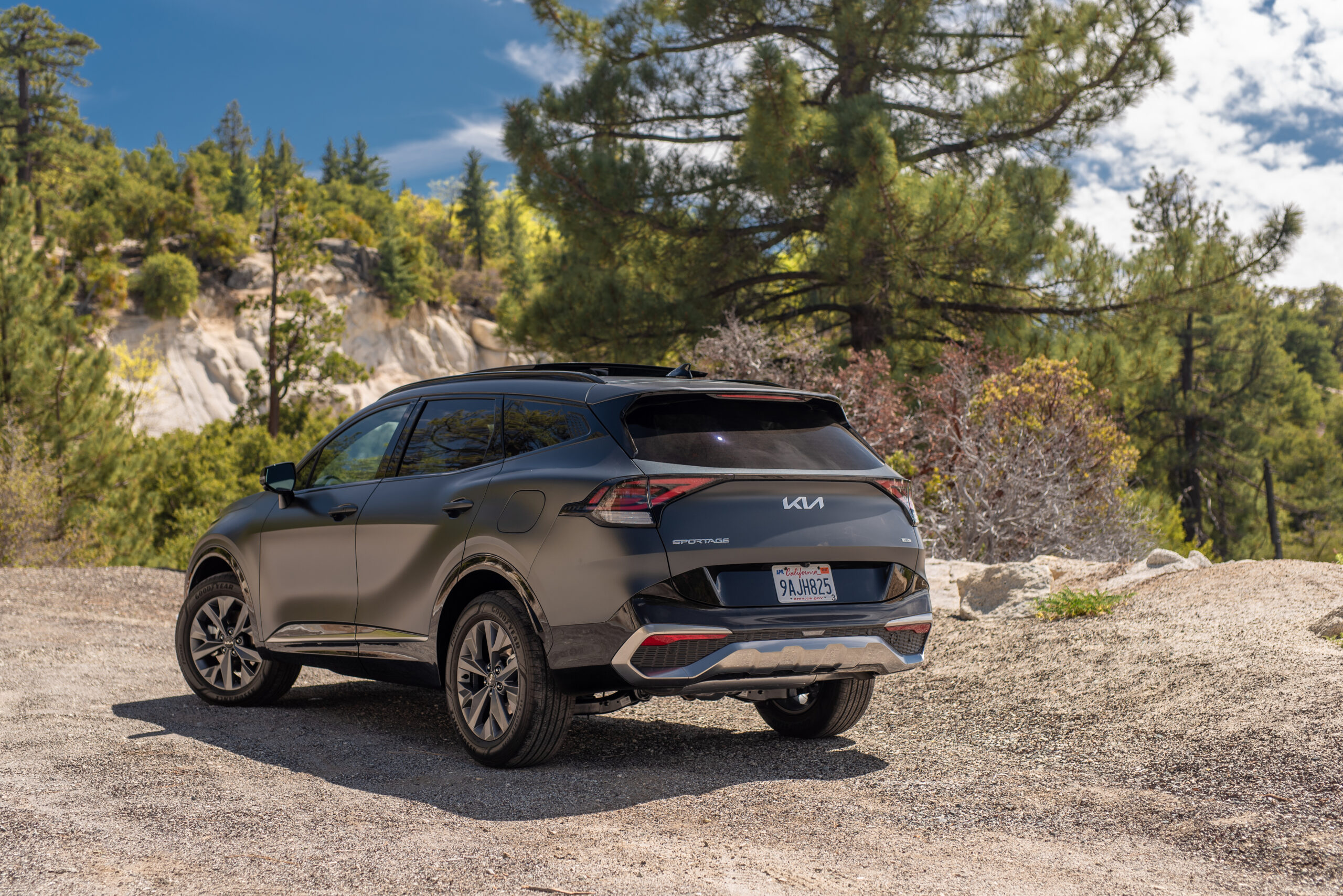 The ICE version on hand for my testing was the off-roading-oriented, fully loaded, all-wheel-drive X-Pro Prestige trim. Mechanically, it offers the same drivetrain as all the other gas-powered Sportage trims: the 2.5-liter four spits out 187 horsepower and 178 pounds-feet of torque to all four wheels in up to a 50/50 front/rear split, although lower trims are also offered with front-wheel-drive. The fully loaded model gets all of the tech and comfort goodies of the non-off-road, higher-trim Sportages, adds a few appearance pieces, and most crucially gets a set of custom-designed BFGoodrich all-terrain tires engineered to take the fullest advantage of the Kia crossover’s newfound ground clearance without compromising on-road comfort.