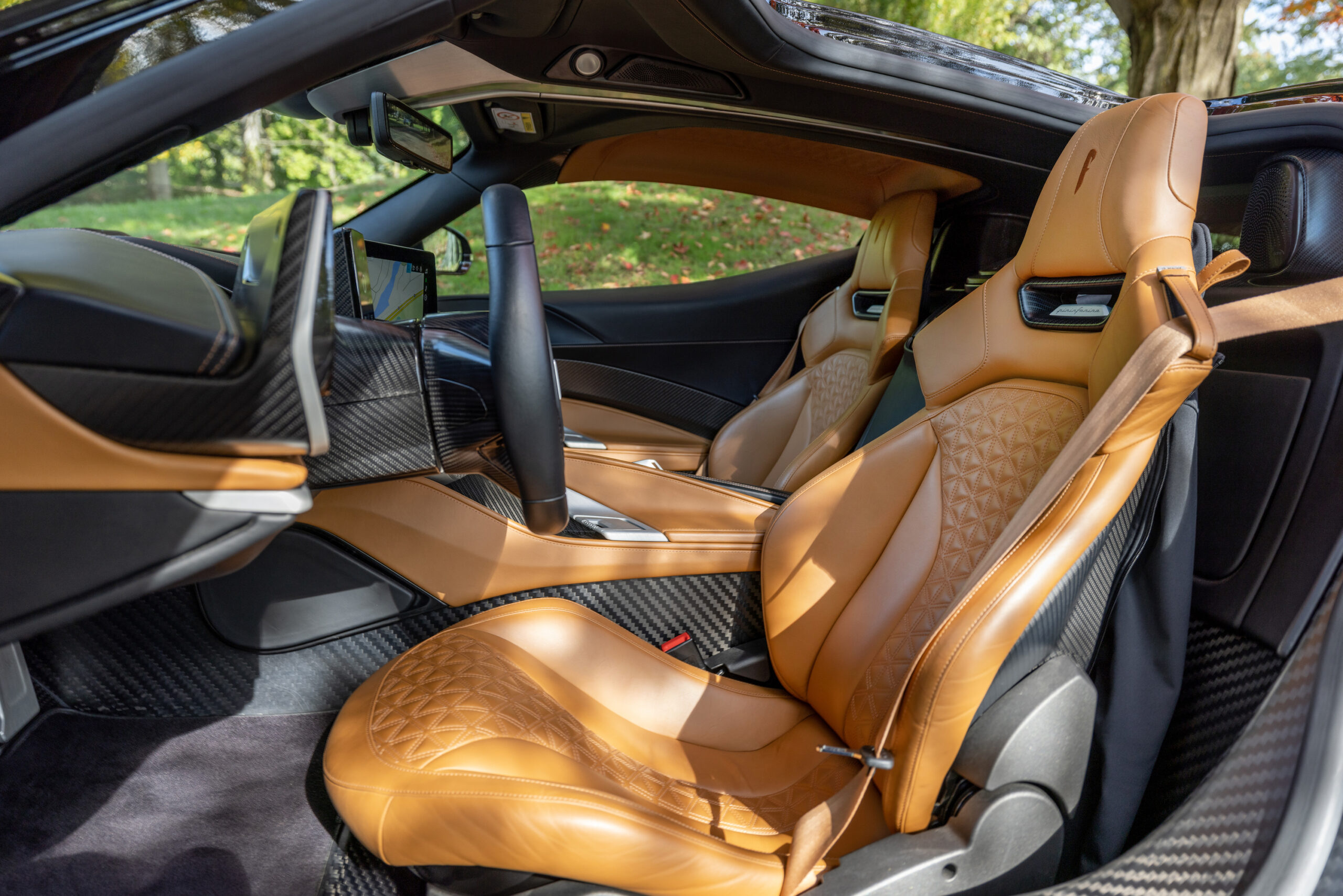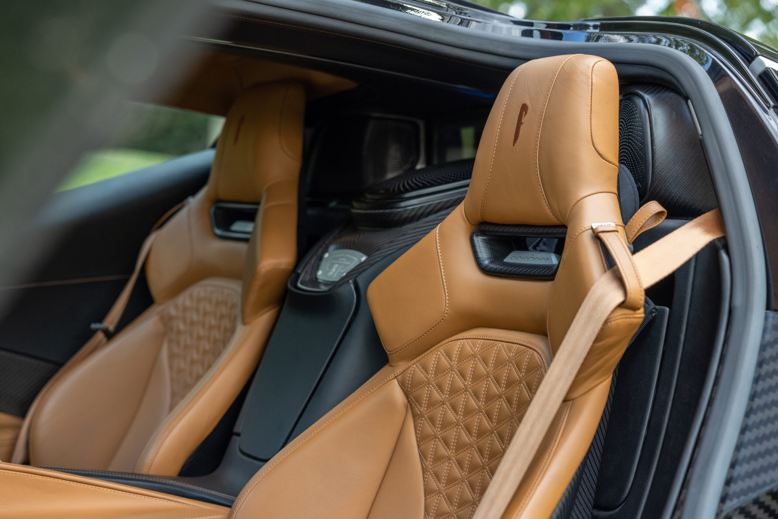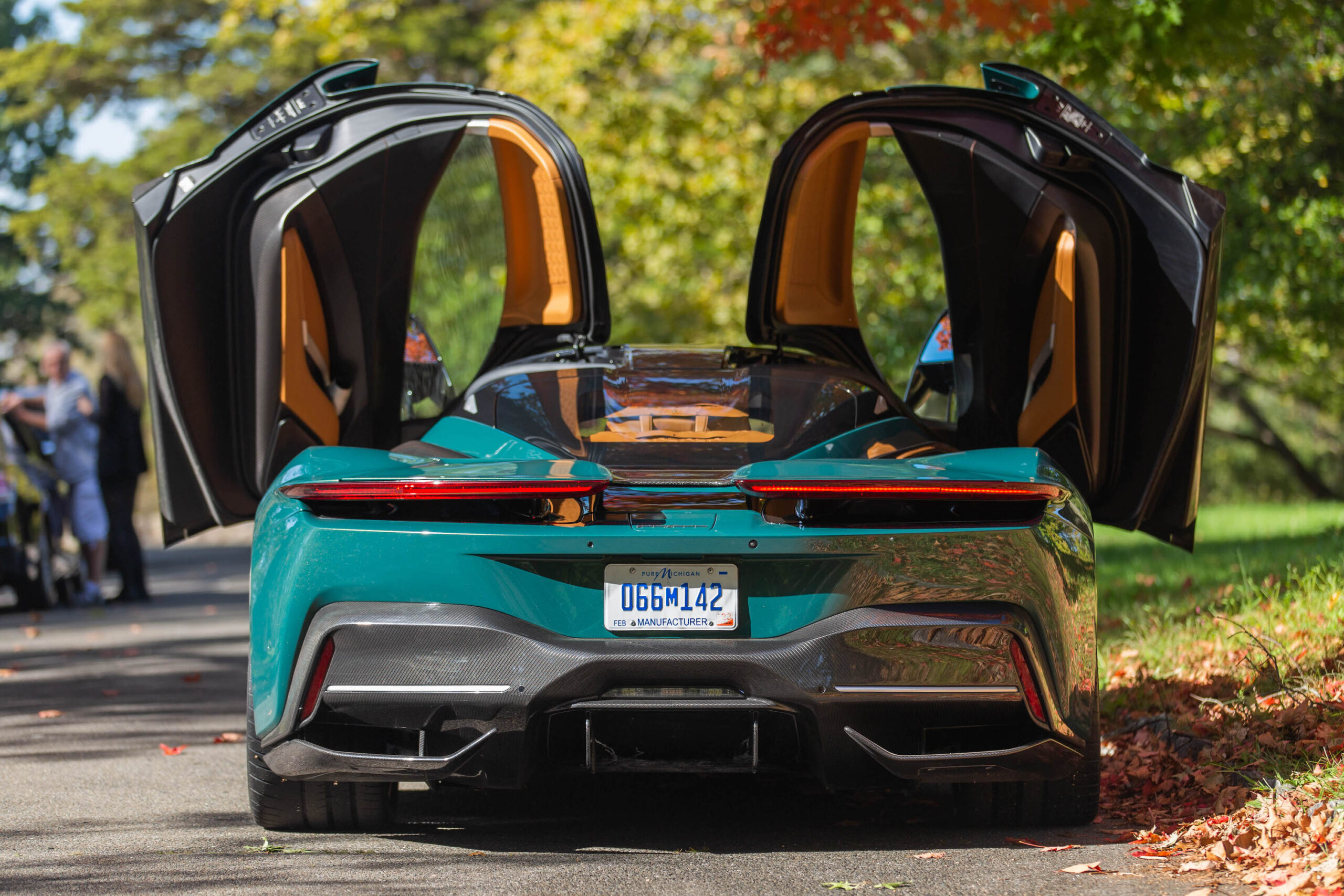 Riding on a carbon fiber monocoque chassis, the Battista has a T-shaped 120-kWh lithium-ion battery pack that’s situated in a central tunnel and up behind the seats; it does not use a skateboard layout, and actually, if you think about where most of that mass is concentrated, the Battista is almost like a mid-“engined” car. The battery powers four independent motors (one for each wheel) and produces a claimed 1,900 horsepower and 1,726 lb-ft of torque.