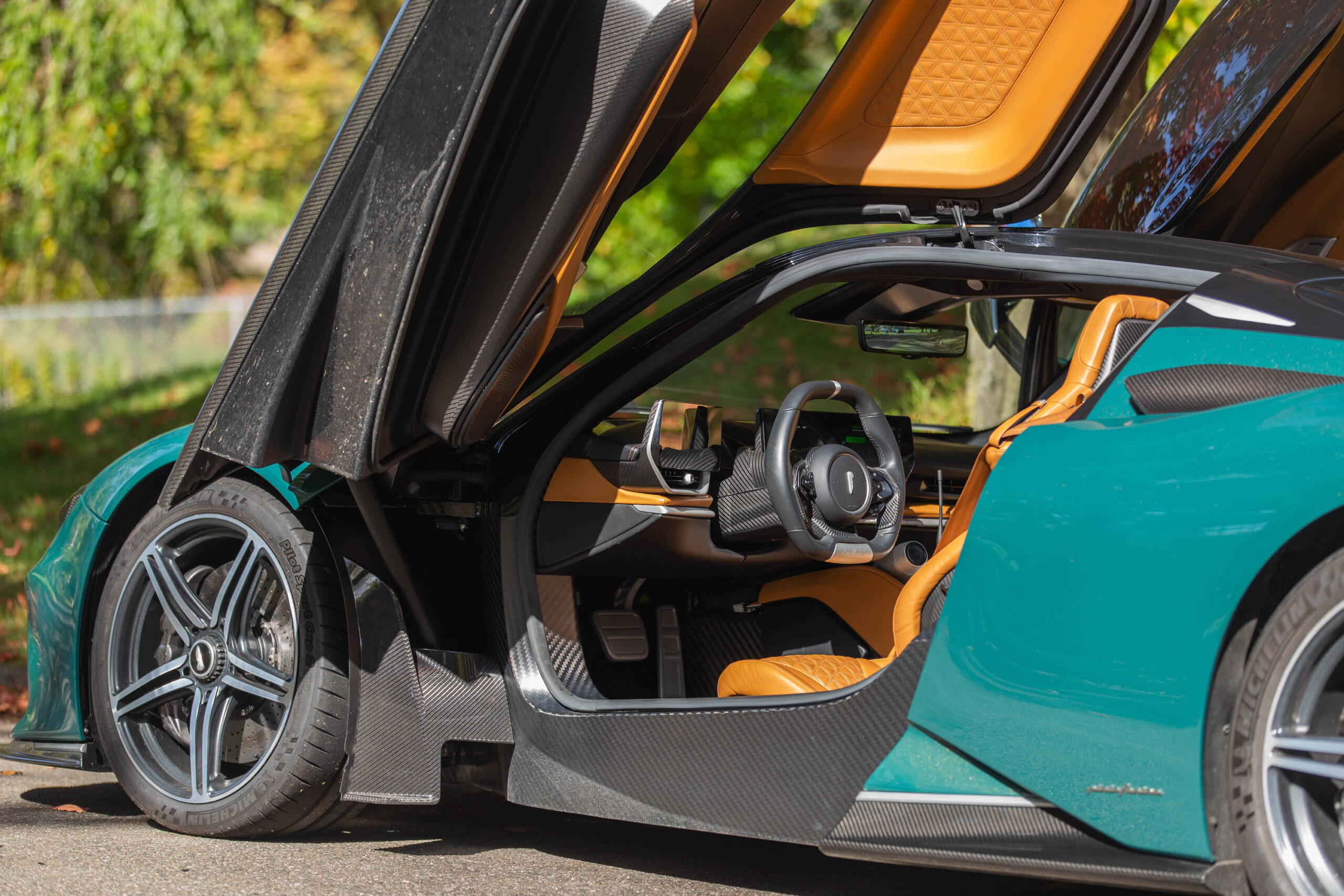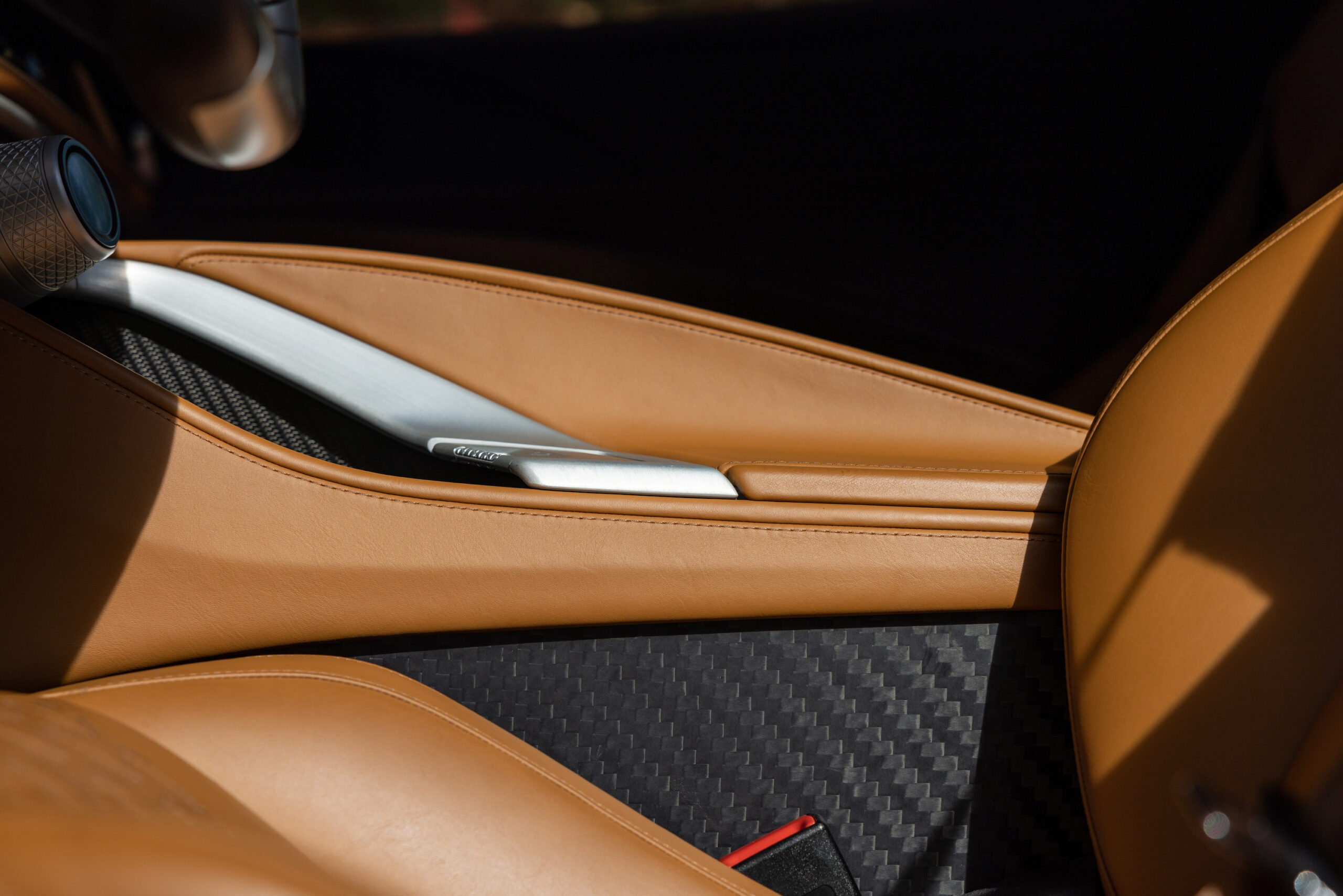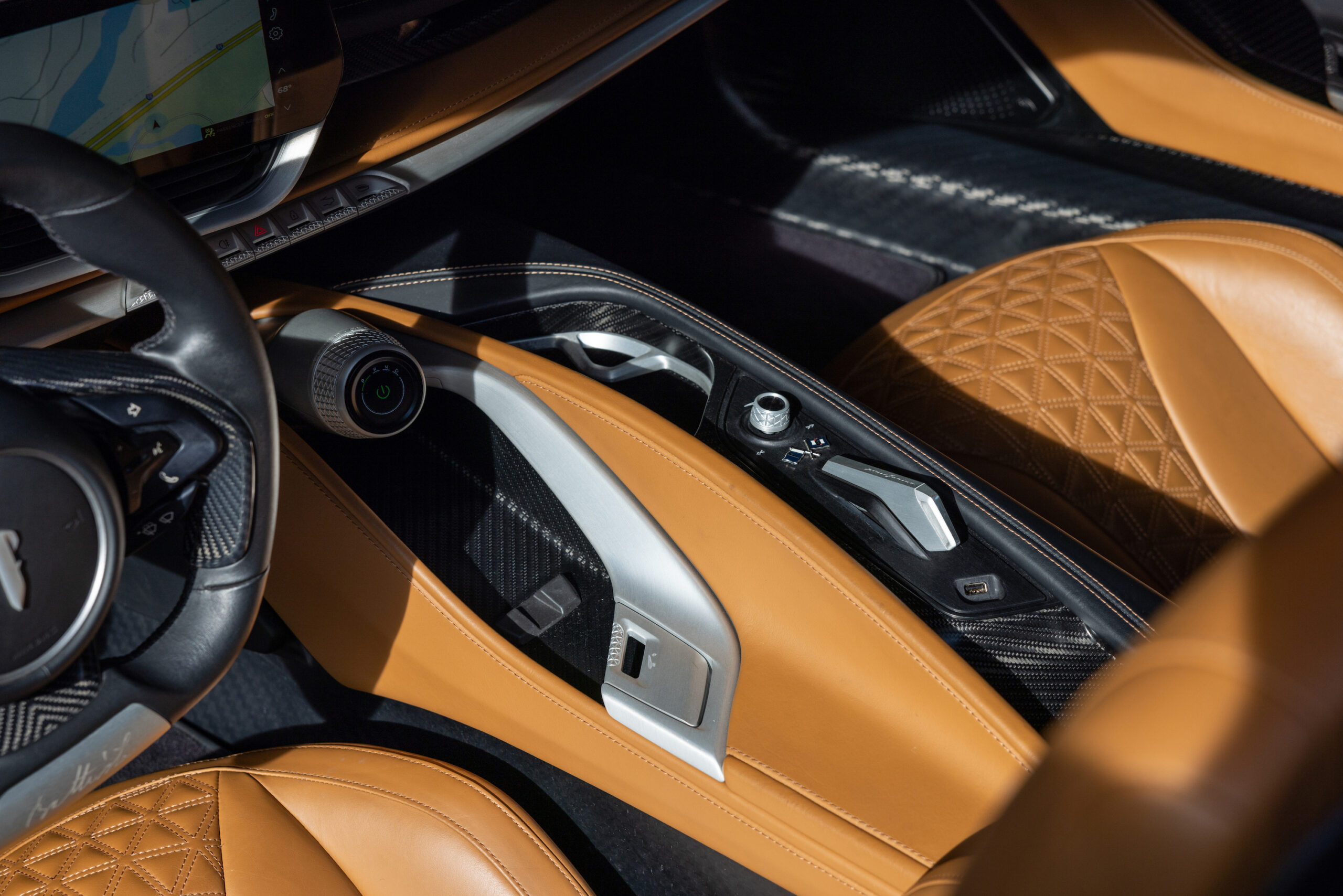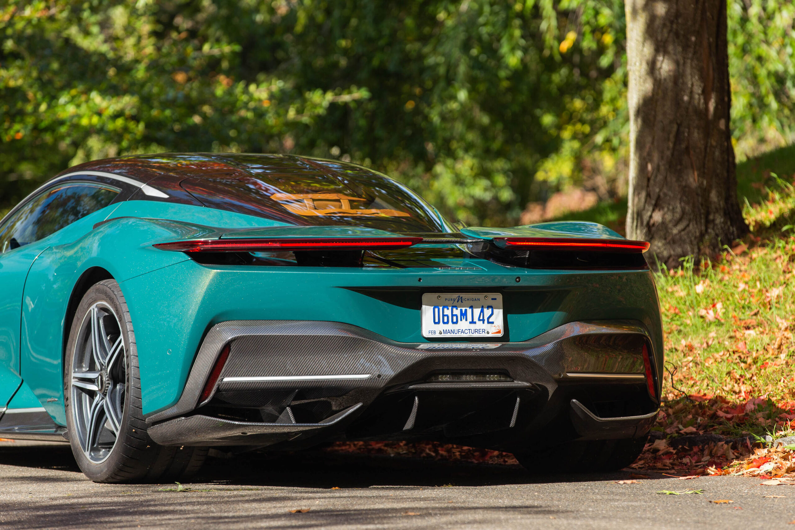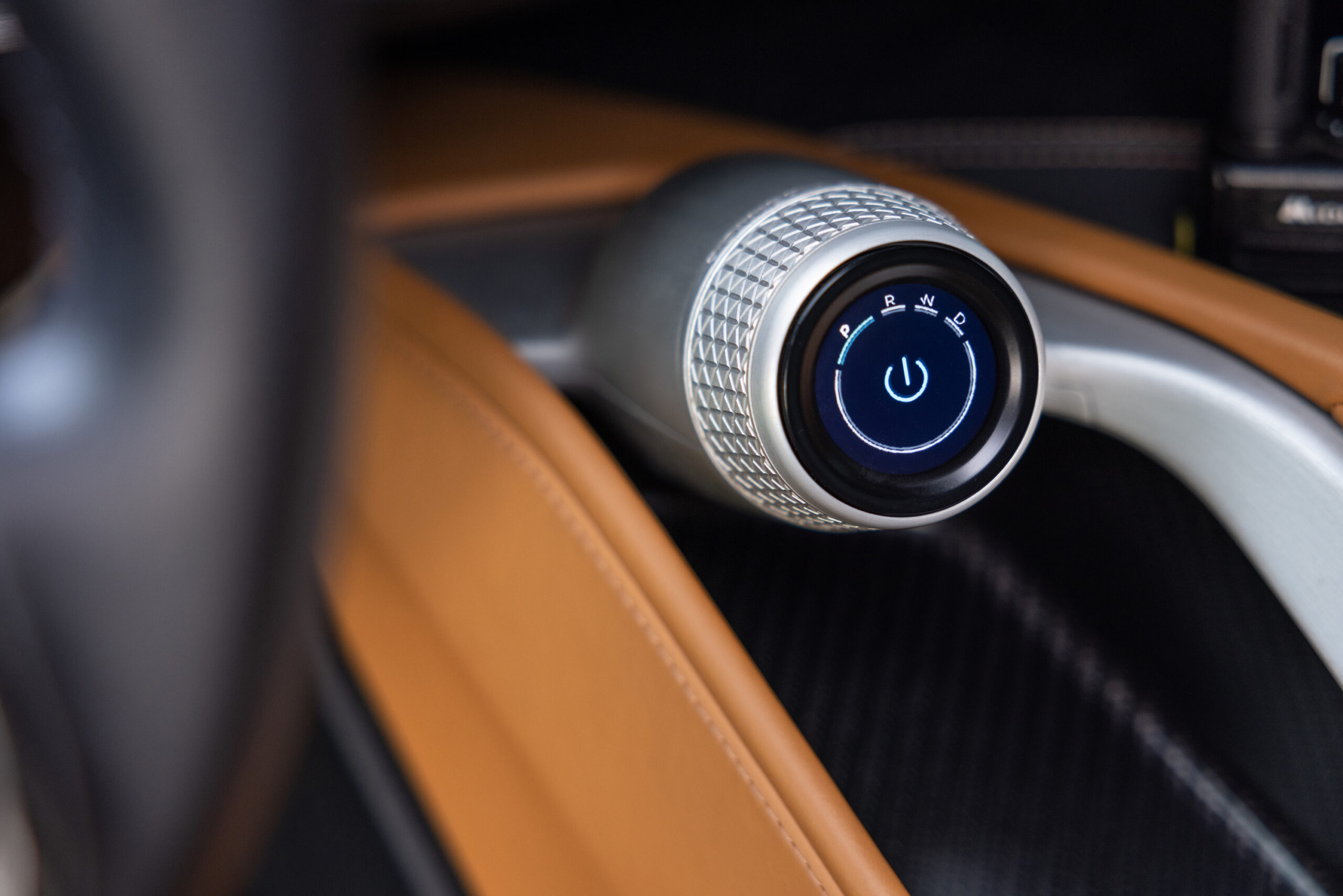 A series of whirs and growls emanated from it constantly. The sticky tires grabbed dozens of tiny rocks and flung them up in the wheel wells, where they clattered off the carbon fiber like a rain rattle. Upon slowing down, there was a buzzing sound that a Pininfarina engineer explained was a sort of “anti-drag” feature that smooths out the transition of regen braking. One-pedal driving becomes instinctive to use, though when I did go to use the physical brake pedal, the bite point was a little difficult to modulate at first because it was so sensitive. Curiously, I also picked up on some very high-frequency feedback while driving the car and couldn’t figure out how to shut it off, but it sounded like one of those frequencies that only people below a certain age can hear.