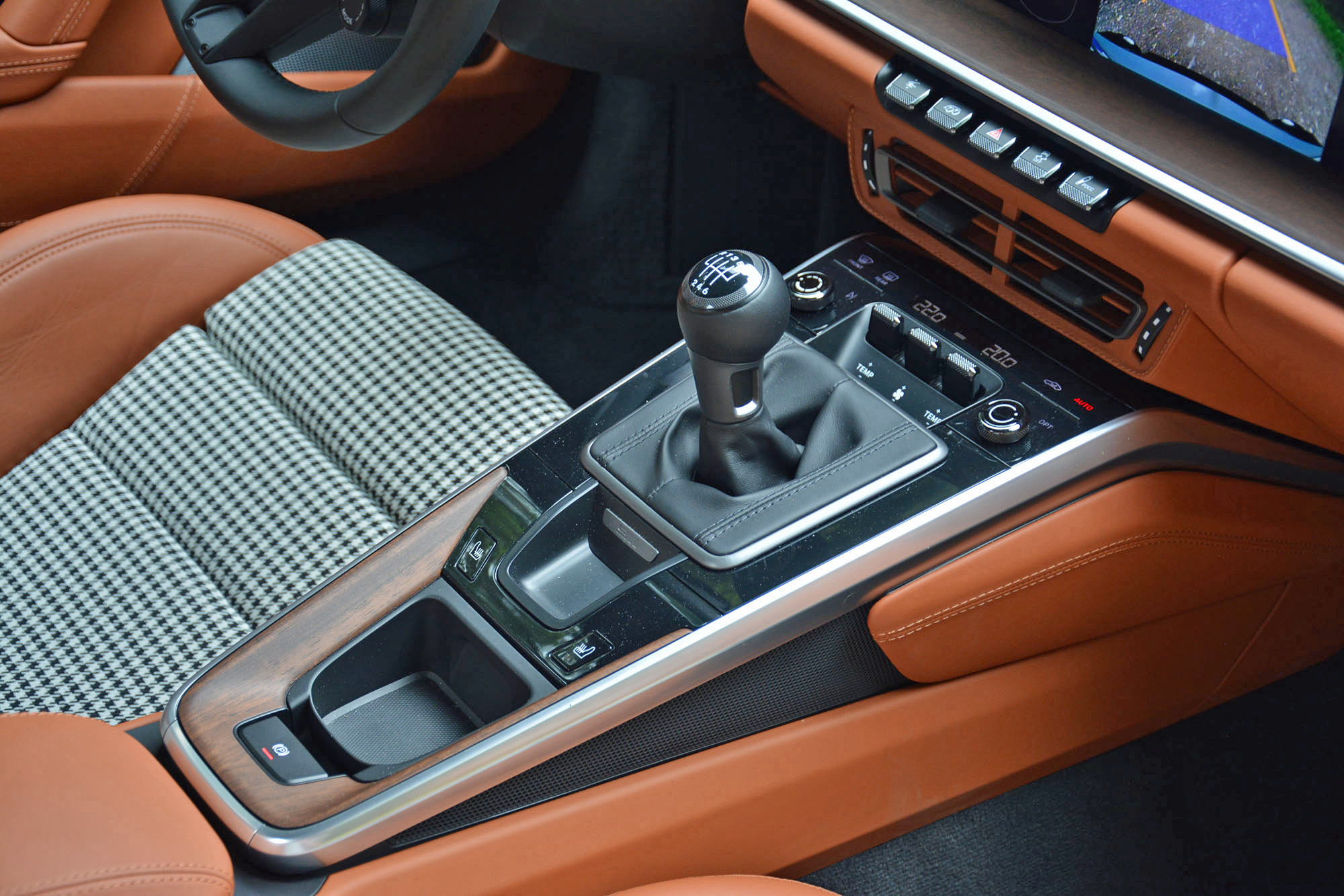 Managing a crew of seven gears can sound disorientingly excessive, like playing one of those batshit double-neck guitars. But it’s not: the seventh gear is there solely to keep the engine’s revolutions low at highway speeds, so it’s sleeping in a far-off corner of the shift pattern in most driving conditions. The first six speeds are well spread out, and the shifter feels precise to operate with relatively short throws. This is the same basic unit that Porsche puts in other 992 variants, so we know what to expect from it by now.