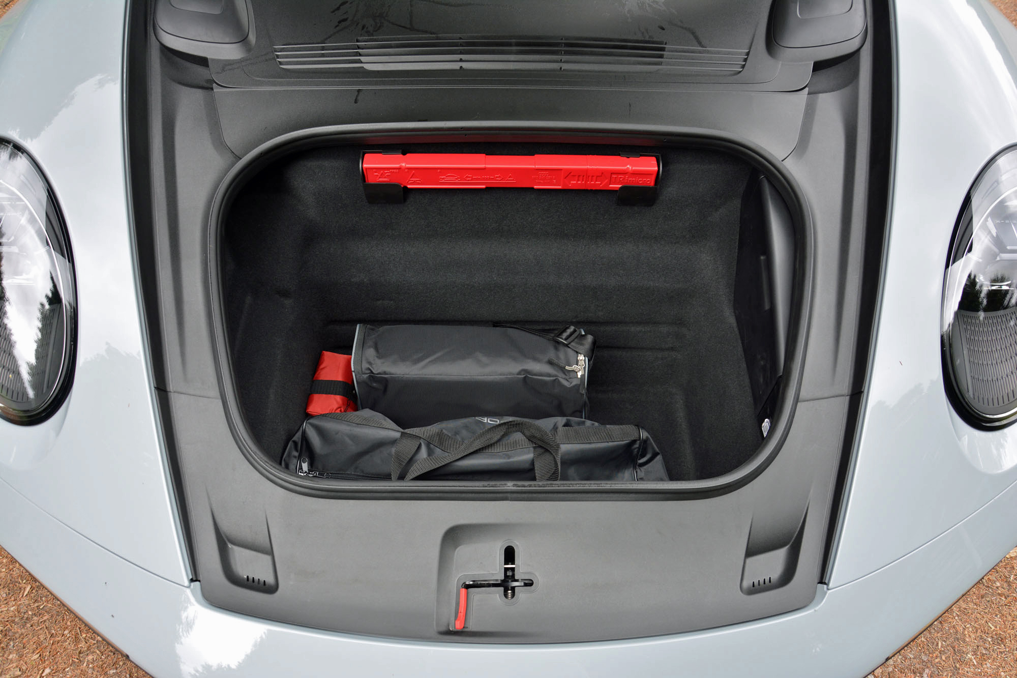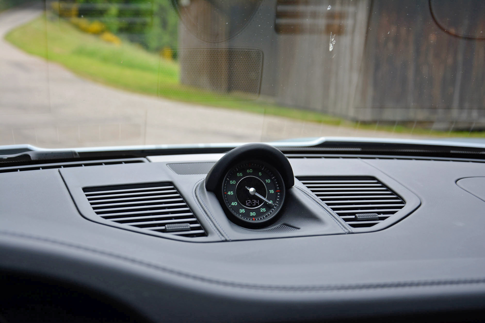 Standard 911 fare isn’t a bad thing; fit and finish are outstanding, the seating position is comfortable, and the controls are right where you expect to find them—if you’re used to driving a Porsche, at least. This heritage model also maintains one of the most longstanding pieces of Porsche tradition, which is a left-hand ignition placement. The touchscreen replaces most of the switchgear in the cabin but there are a few buttons below it (including one that raises the front axle to clear bumps) and on the center console.
