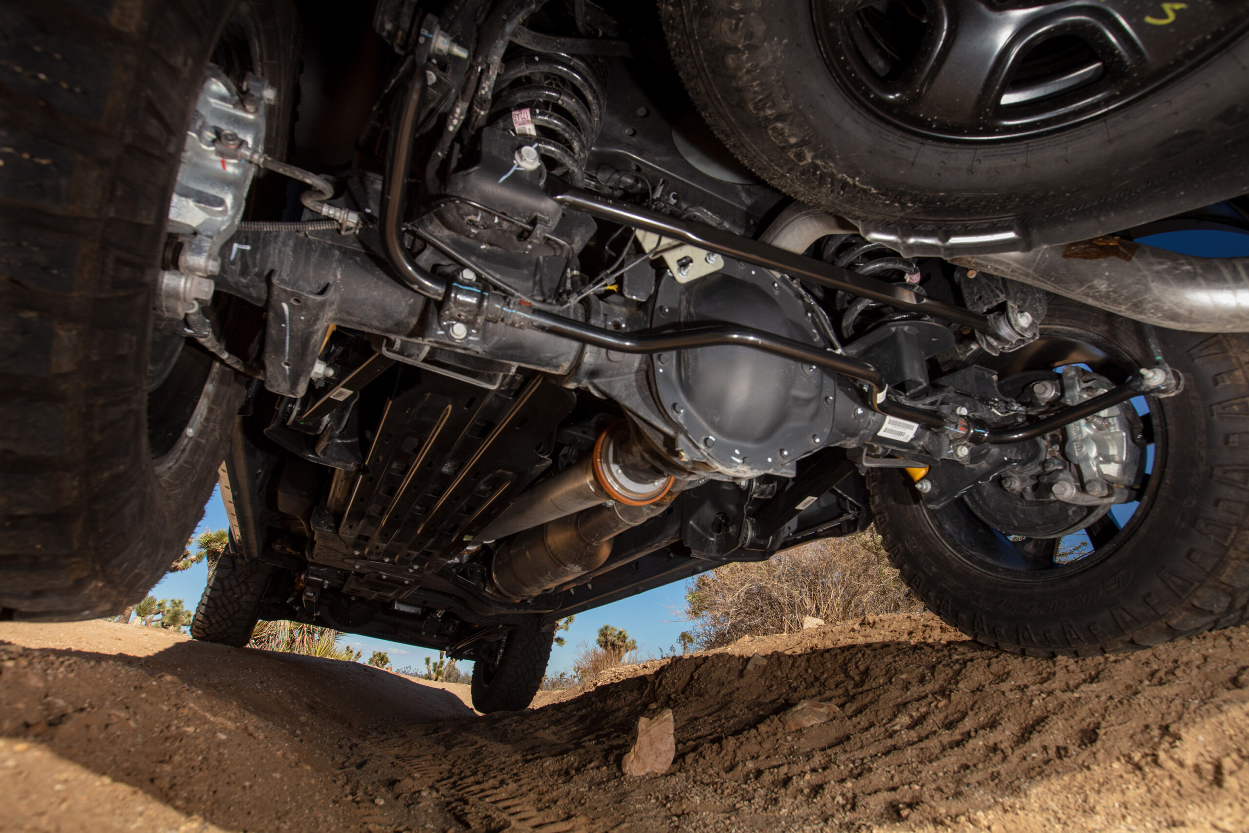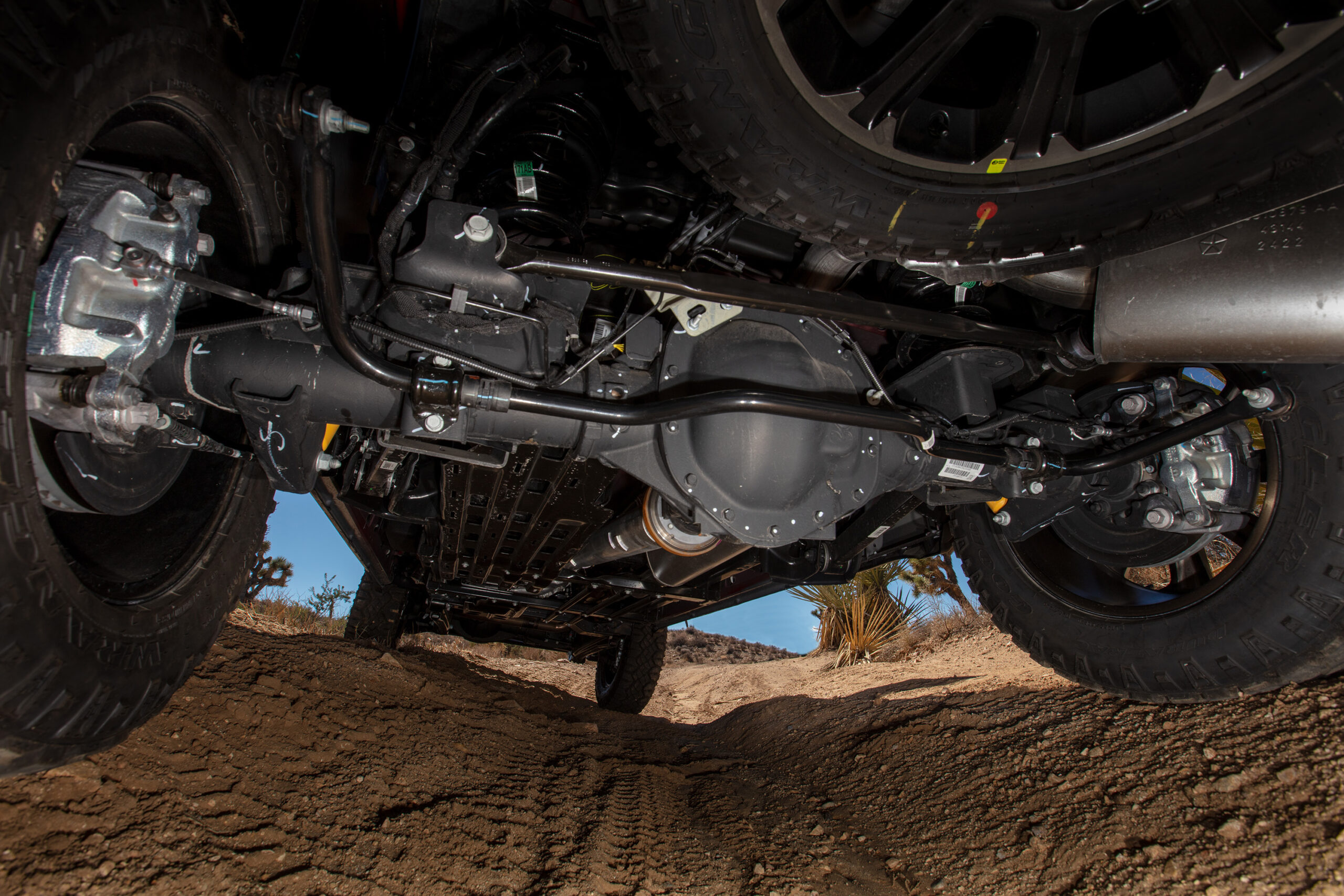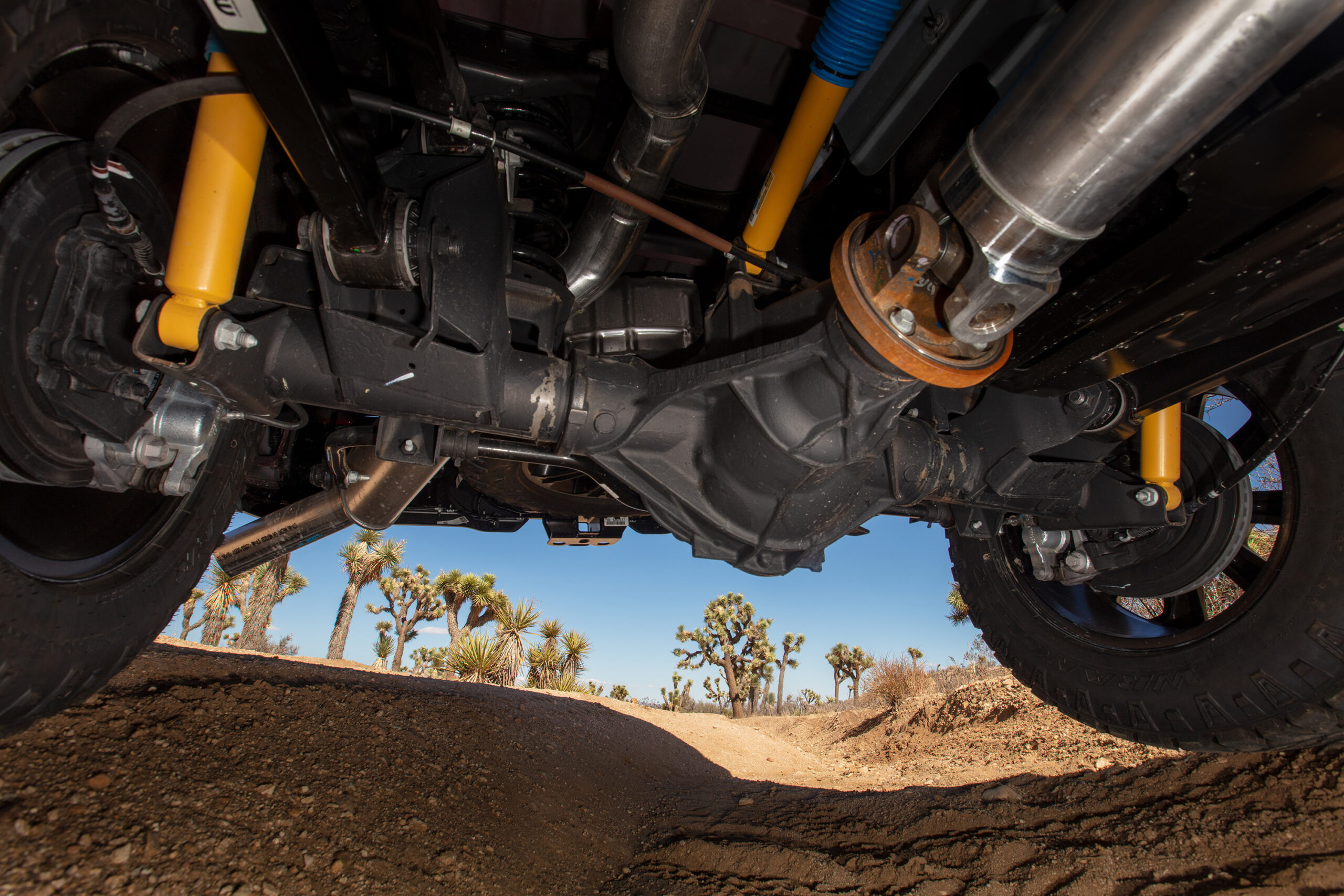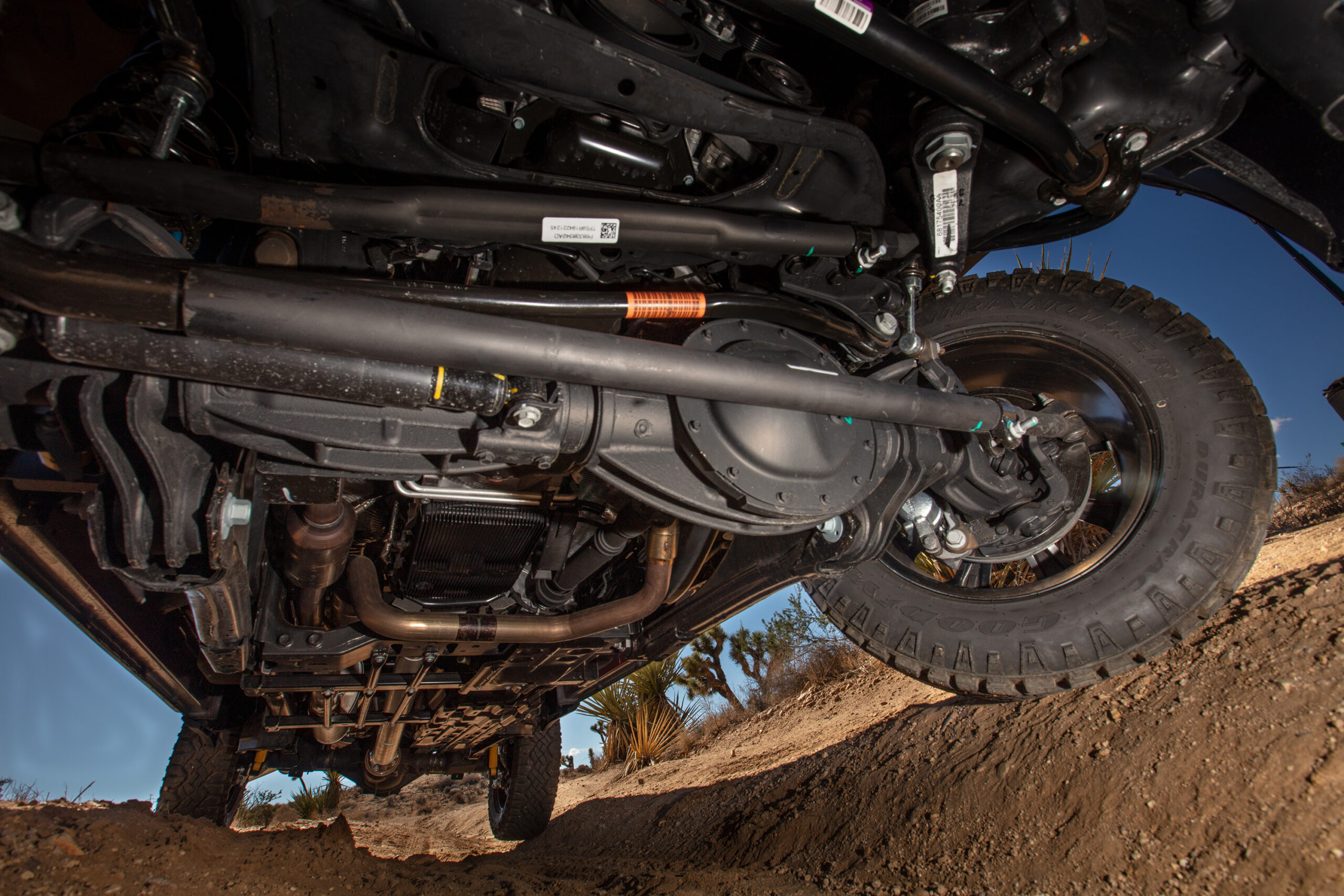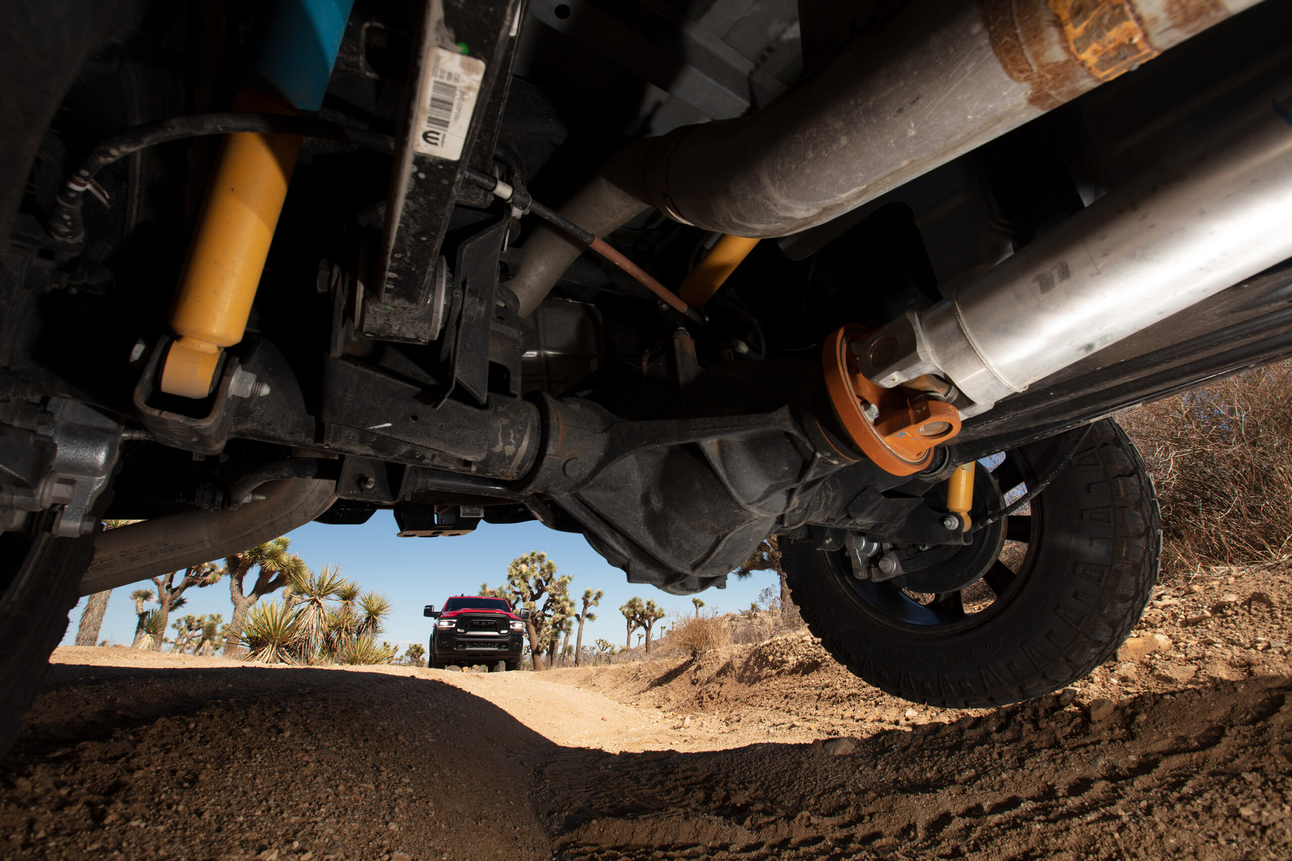 The basic bones of the Rebel share more componentry with a conventional 2500-series 4×4 than they do the Power Wagon. In fact, the frame and suspension system are identical to every other Ram 2500 with the exception of the Rebel’s Bilstein dampers. In short, this means the Rebel doesn’t get the Power Wagon’s two-inch lift, fancy swaybar disconnect system, or that special Articulink joint in the upper control arm to increase front axle twist.