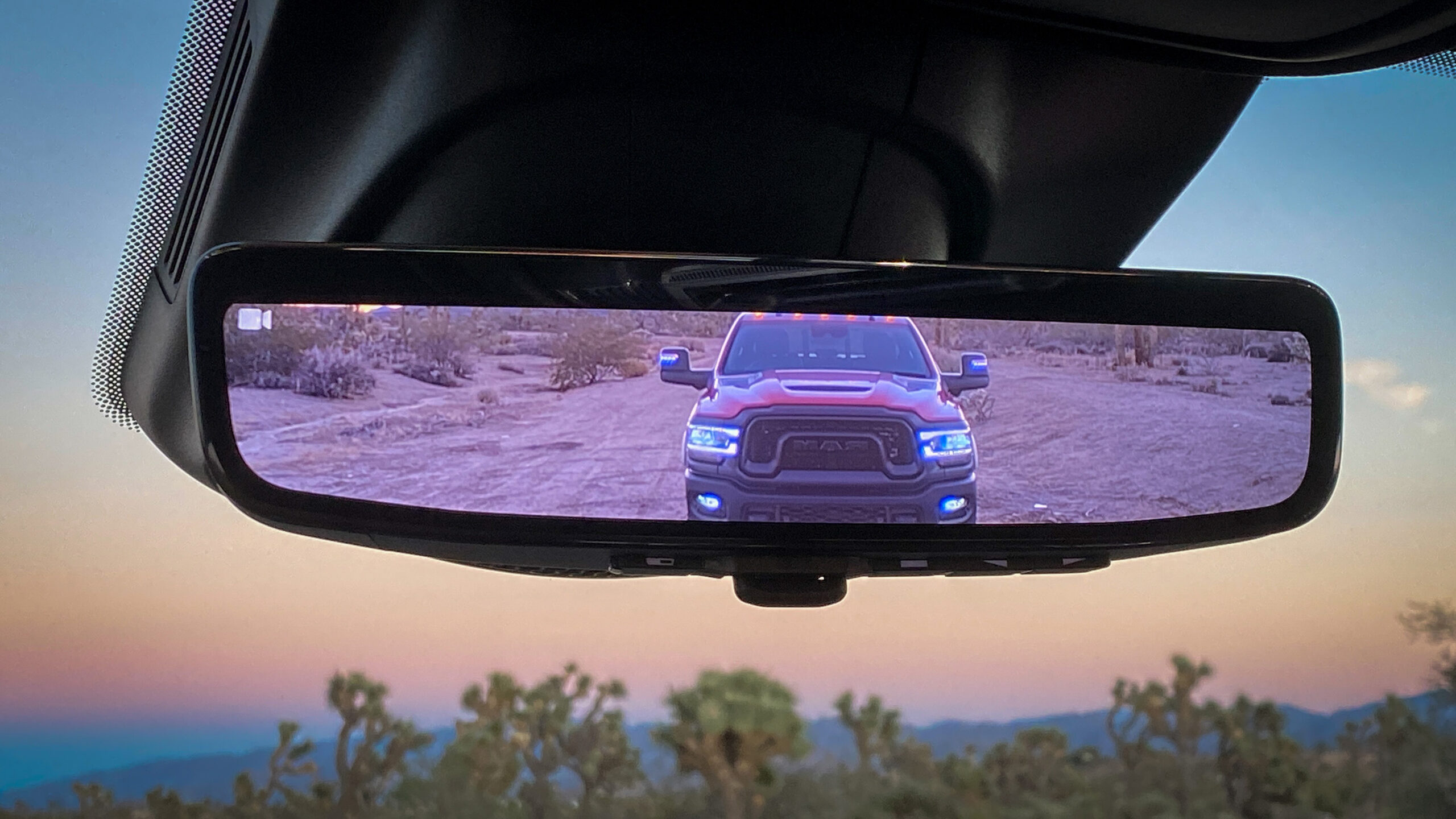 All 2023 Ram Heavy Duty trucks benefit from a new digital cluster that offers deep levels of configuration ability. The Ram HD goes big on mirrors for 2023, too. The optional digital rearview mirror has a three-view mode now that shows what’s happening down either side of the truck (thanks to side mirror cameras) as well as behind the truck or the trailer (if towing) when you opt for the auxiliary camera. The optional towing side mirrors not only extend at the push of a button but deliver front and rear work lights. Smart.