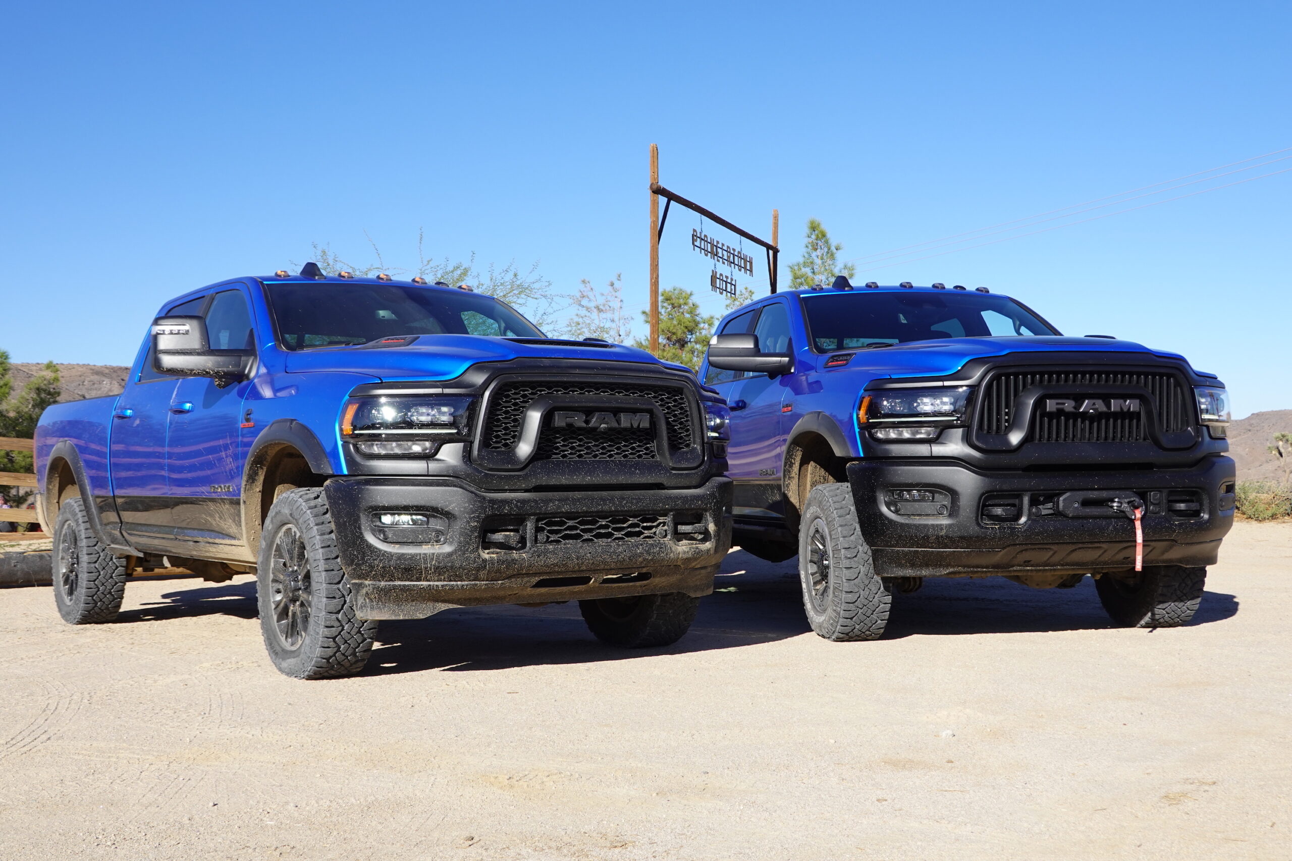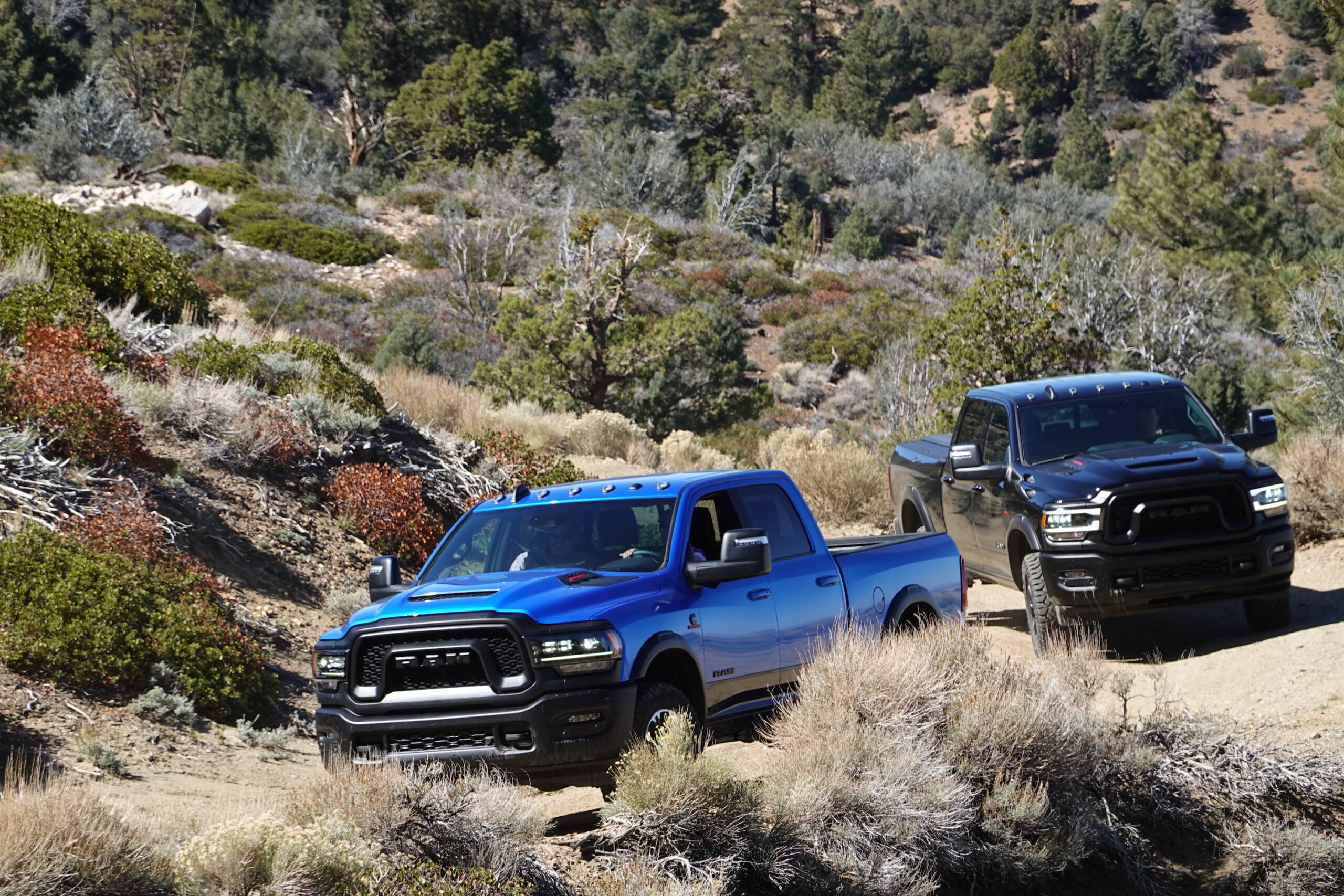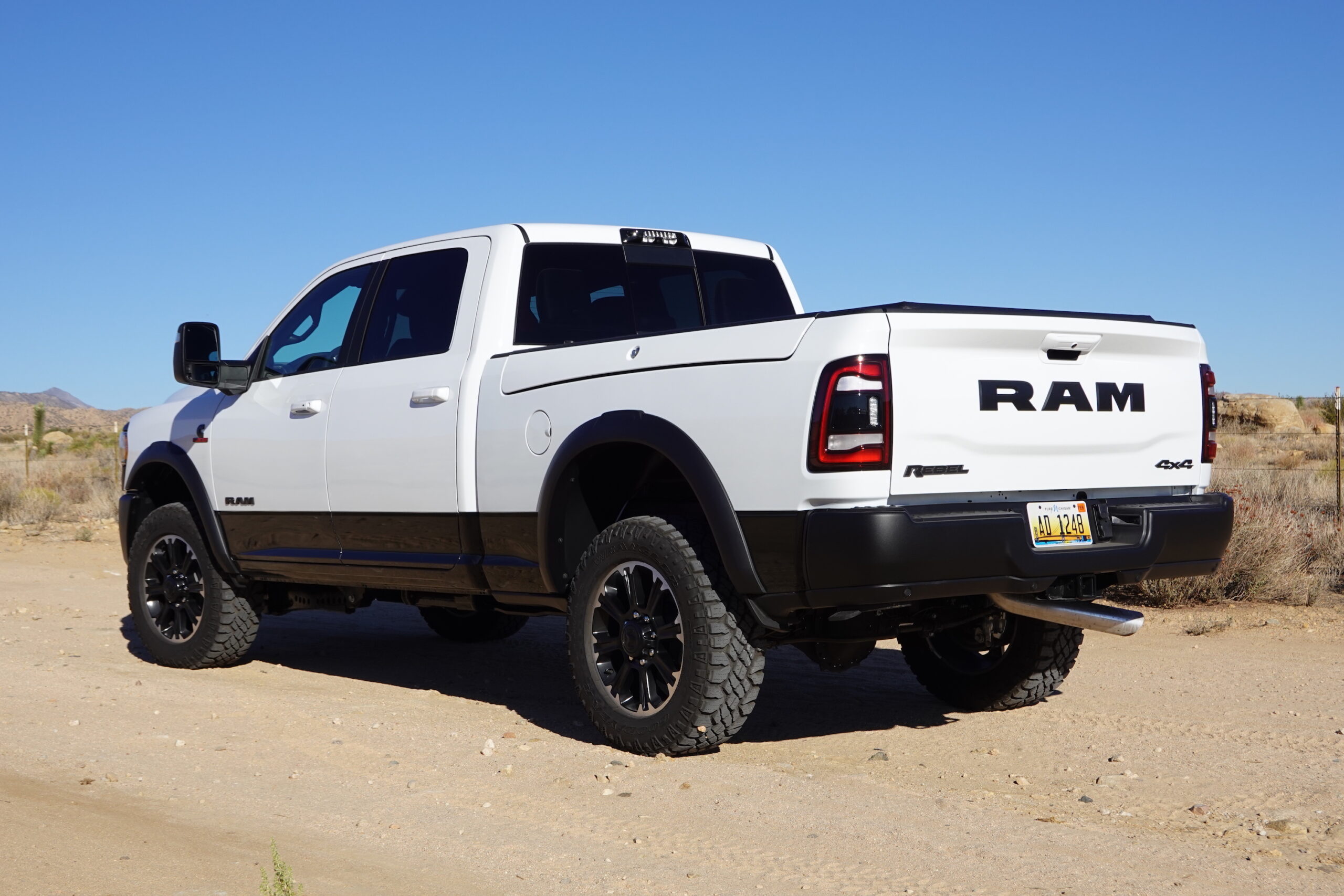 On the roads around Pioneertown, the Rebel behaves in much the same way other Ram 2500s do—it’s a smooth-riding sweetheart of a heavy-duty truck. This rig is certainly in the hunt for the most comfortable truck in the class. And that makes sense considering it’s the only heavy-duty pickup with a sophisticated five-link, coil-sprung rear suspension instead of old-timey leaf springs. In fact, you can even option a Rebel with a rear air suspension.