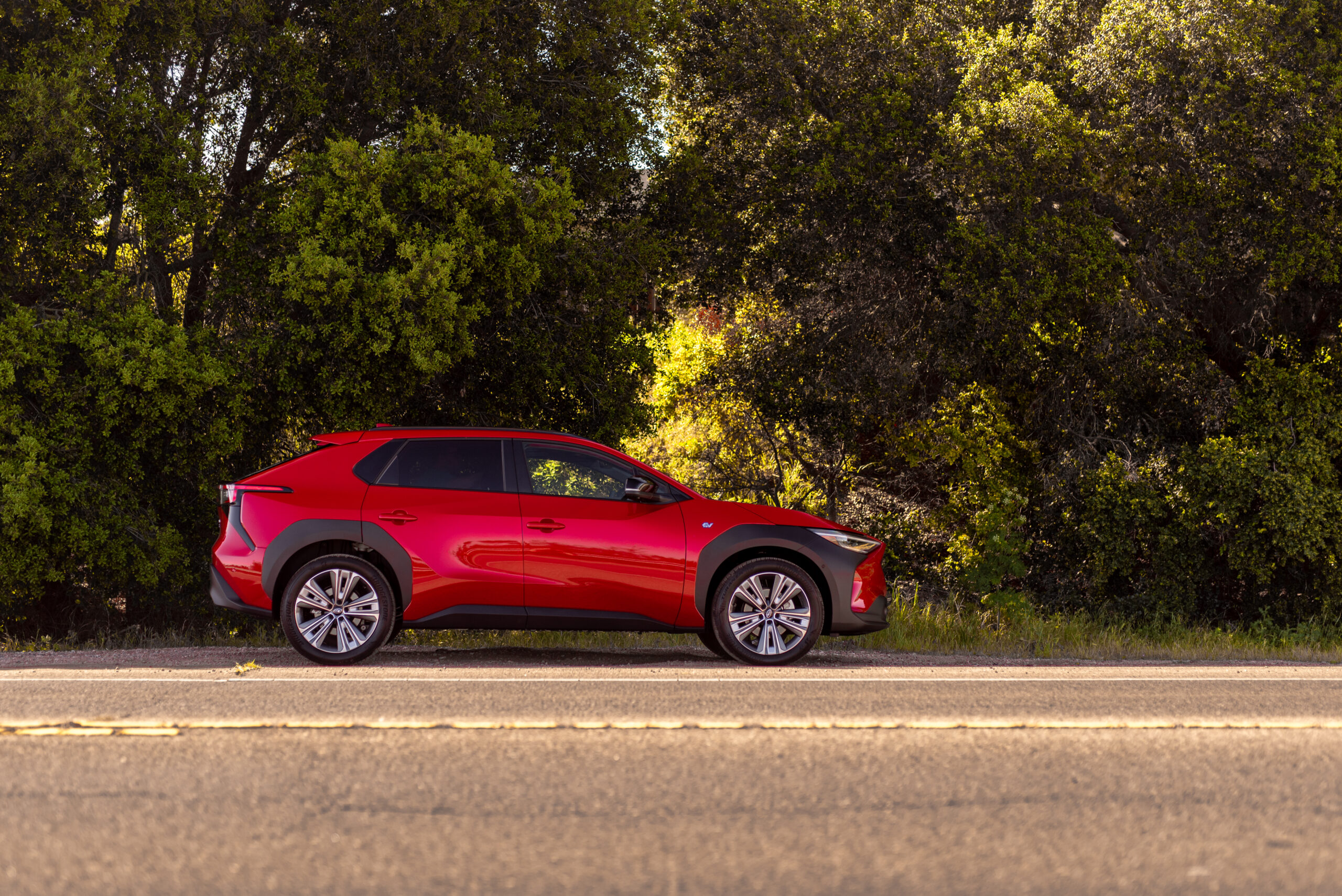 With my familiarity established with the Solterra’s innards, Subaru tossed me the keys and pointed me at the smooth blacktop of Santa Barbara. The standout feature for me immediately was how comfortable the ride felt. Despite Subaru’s focus on proving its first BEV can off-road like the rest of its lineup (more on that later), the Solterra is remarkably well-sprung for pavement, with its 112.2-inch wheelbase and gentle shock valving making it feel much more placid than many competing crossovers, such as the more swift-footed Kia EV6. Subaru’s Eyesight suite of driving assists—which includes lane-keep assistance, adaptive cruise control for both traffic and cornering, and pre-collision braking—made short work of the 101, although on some of the curvier, 55-mph roads through the mountains of the Los Padres National Forest, I found it a bit harsh on deceleration into corners and the lane-keep assist a bit less confident than some competitors.
