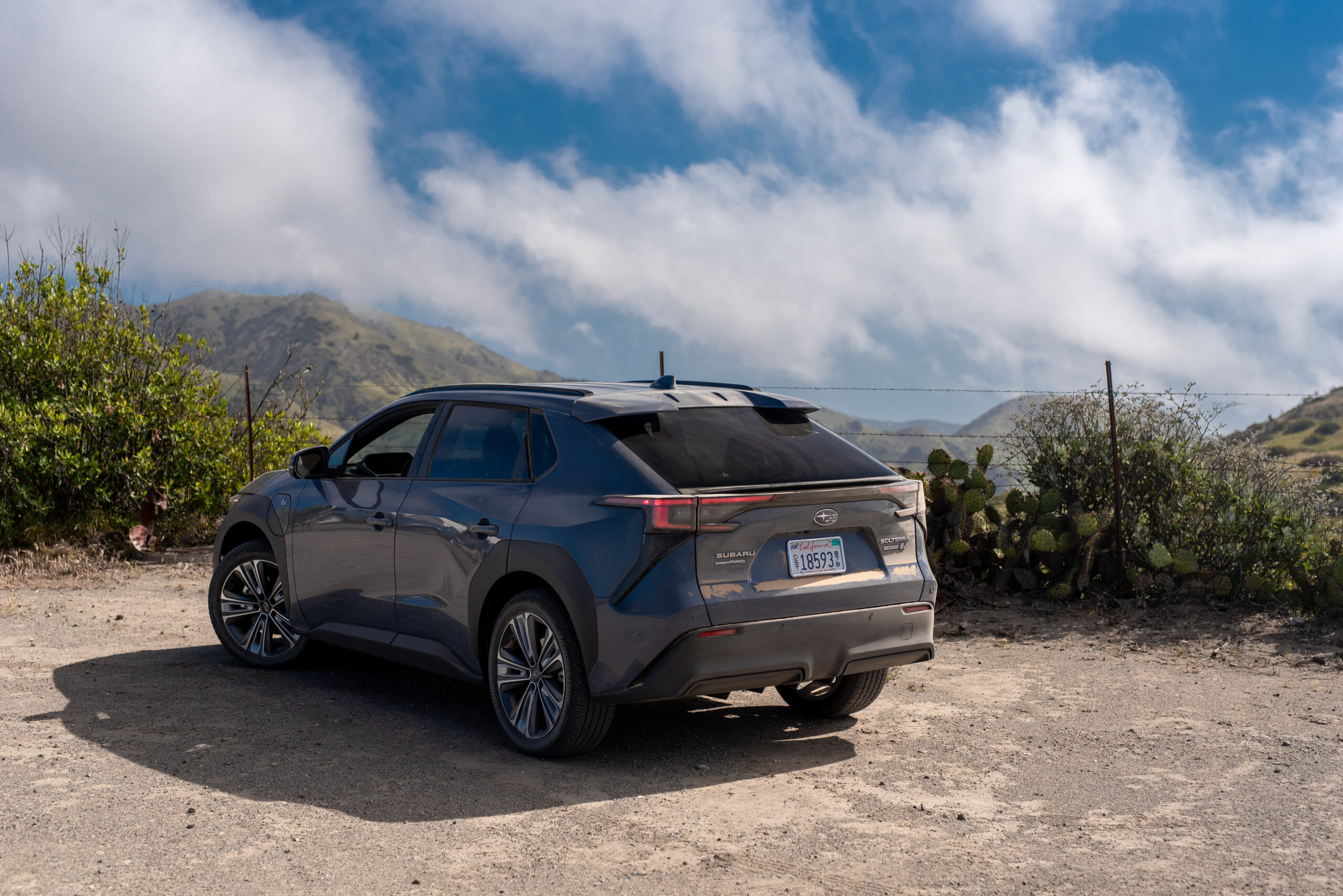 Sharp-eyed readers may have noticed I’ve not mentioned the Solterra’s exterior styling thus far in my review, and that’s because I have nothing kind to say about it; after seven hours of shooting photos of it in some of the most beautiful vistas of Southern California, I never found a single angle I really liked. It is cladding-bedecked just like the rest of Subaru’s lineup is; unfortunately, it wears it worse than its ICE brethren do. True, its front and rear fascias are sharply angled, but they’re also overall pretty anonymous and forgettable. And the most major stylistic difference the Solterra bears from the BZ4X—the hexagonal suggestion of a grille tacked onto the front end—makes it even uglier than the already-unlovable Toyota.