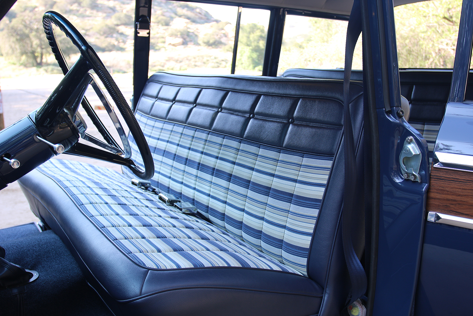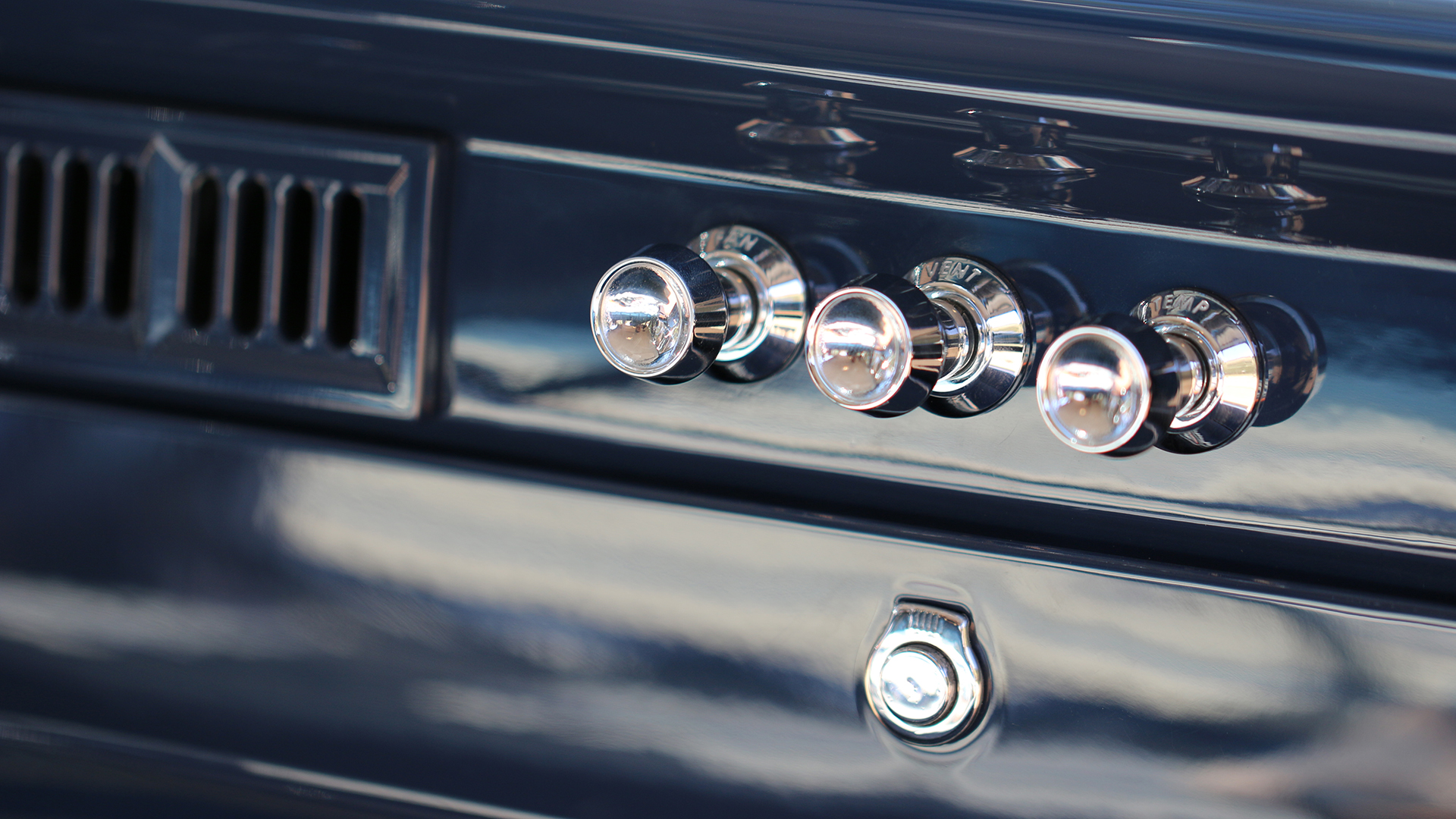 That philosophy is easier to experience on the inside. It looks to be a concours-worthy restoration at first, but a closer inspection reveals just about everything has been subtly upgraded from stock. Plastics surfaces are not allowed in Ward’s world—every knob, switch or touch point is now either metal or fabric, save for a strip of period-correct vinyl crowning the seat benches. All of those new bits had to be custom machined.