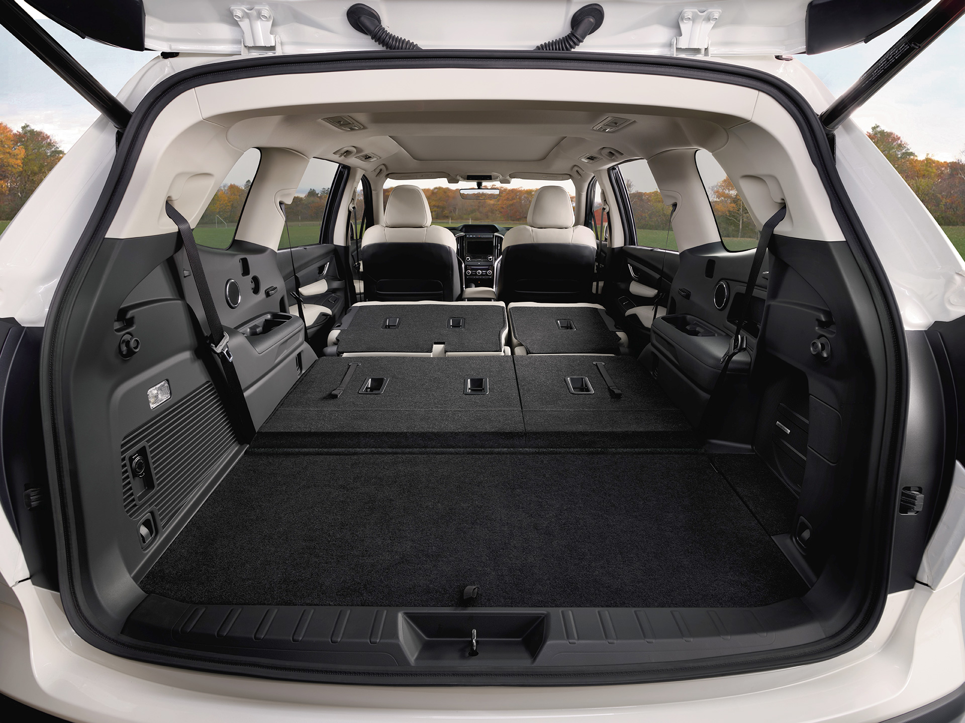 Fold both rows flat, and there’s a mighty 86.5 cubic feet of space; leave the second row up and the third row down, and there’s 47.5 cubic feet of space; fill all three rows with passengers, and they’ll have to battle over the remaining 17.8 cubes behind that third row. There is a hidden spot for the retractable cargo cover in the floor back there should you feel the need to fill that sucker up to the brim; that’s best left to the top-tier Touring model, though, which hasa Cadillac-like system that turns the rear view mirror into a tiny screen showing the feed from a rear window-mounted camera for those times rear visibility is impeded. Android Auto and Apple CarPlay handily come standard, along with the latest version of Subaru’s Starlink infotainment and a quartet of USB ports; a 14-speaker, 792-watt Harmon Kardon stereo is optional, as is in-car wi-fi. Those seeking the maximum number of places to charge up devices to hop on will want the Touring, which offers as many as eight USB ports and a 120-volt outlet; lesser models make do with four or six (though any parent worth his or her PTA membership will presumably have a handful of brightly-colored USB cigarette lighter adaptors floating around).