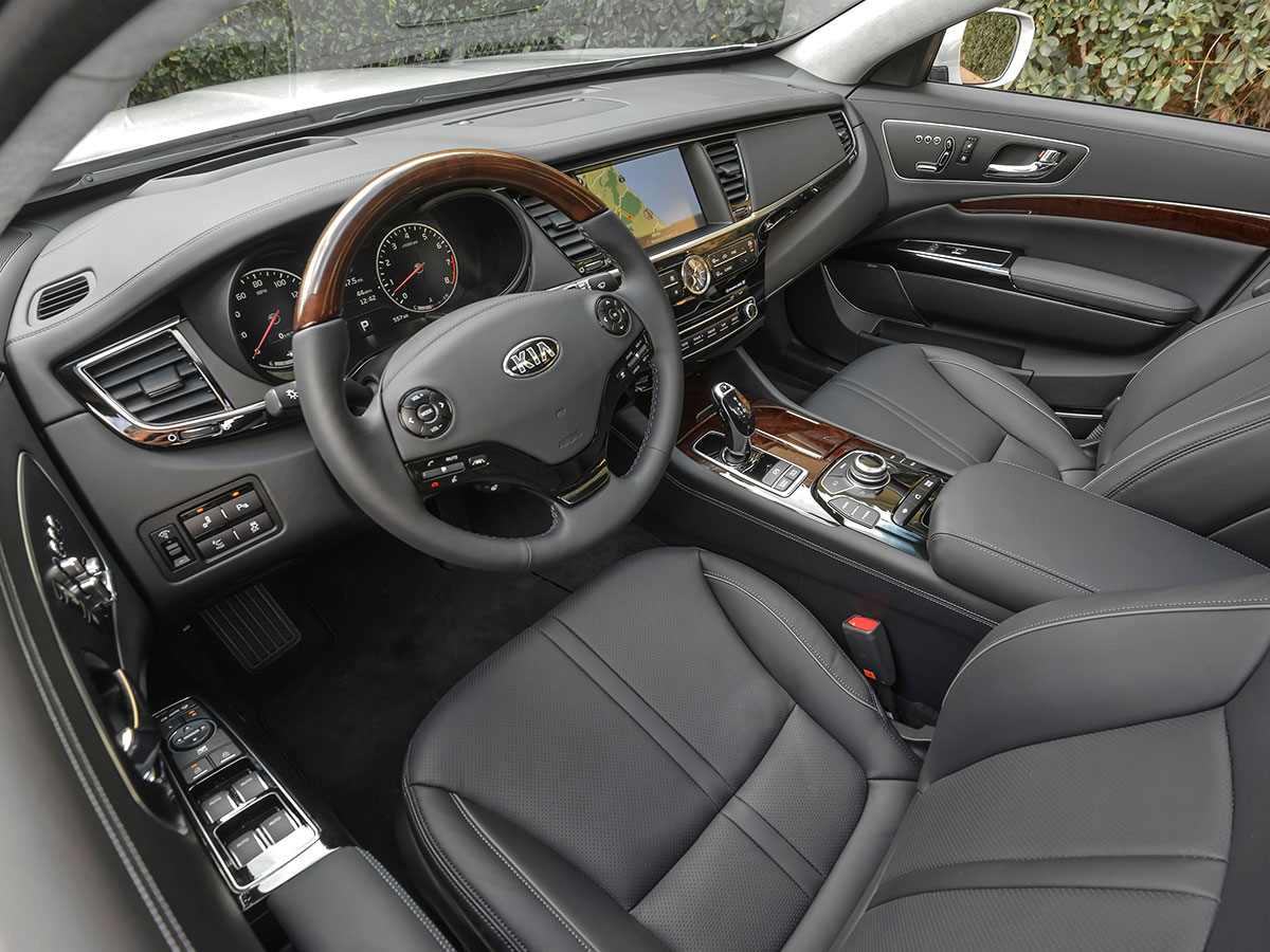 A newly available suite of Uvo Luxury services includes smartphone-enabled remote locking, starting and climate control. The K900 adopts an enlarged, 9.2-inch navigation system; but some functions are clunkier than what we expect from the ergonomically correct Kia and Hyundai, including a virtual keyboard that made for tedious scrolling via a rotary console controller.