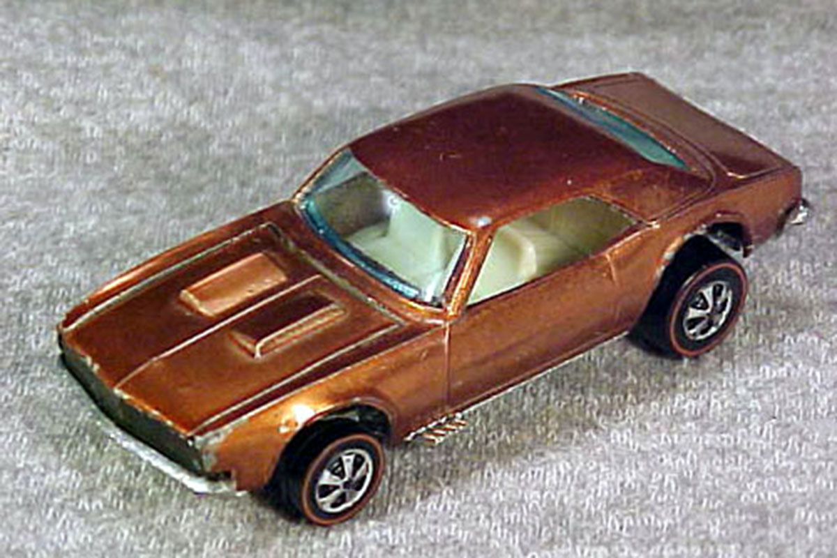 [After-the-Fact-Check: The earliest Hot Wheels are known as “Redlines” thanks to their distinct red-striped wheels. Of the 16 models that launched the brand in 1968, the Custom Camaro was the first to be produced; surviving examples are worth thousands of dollars today.]