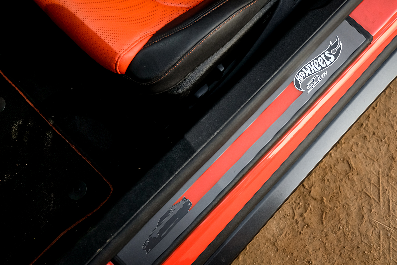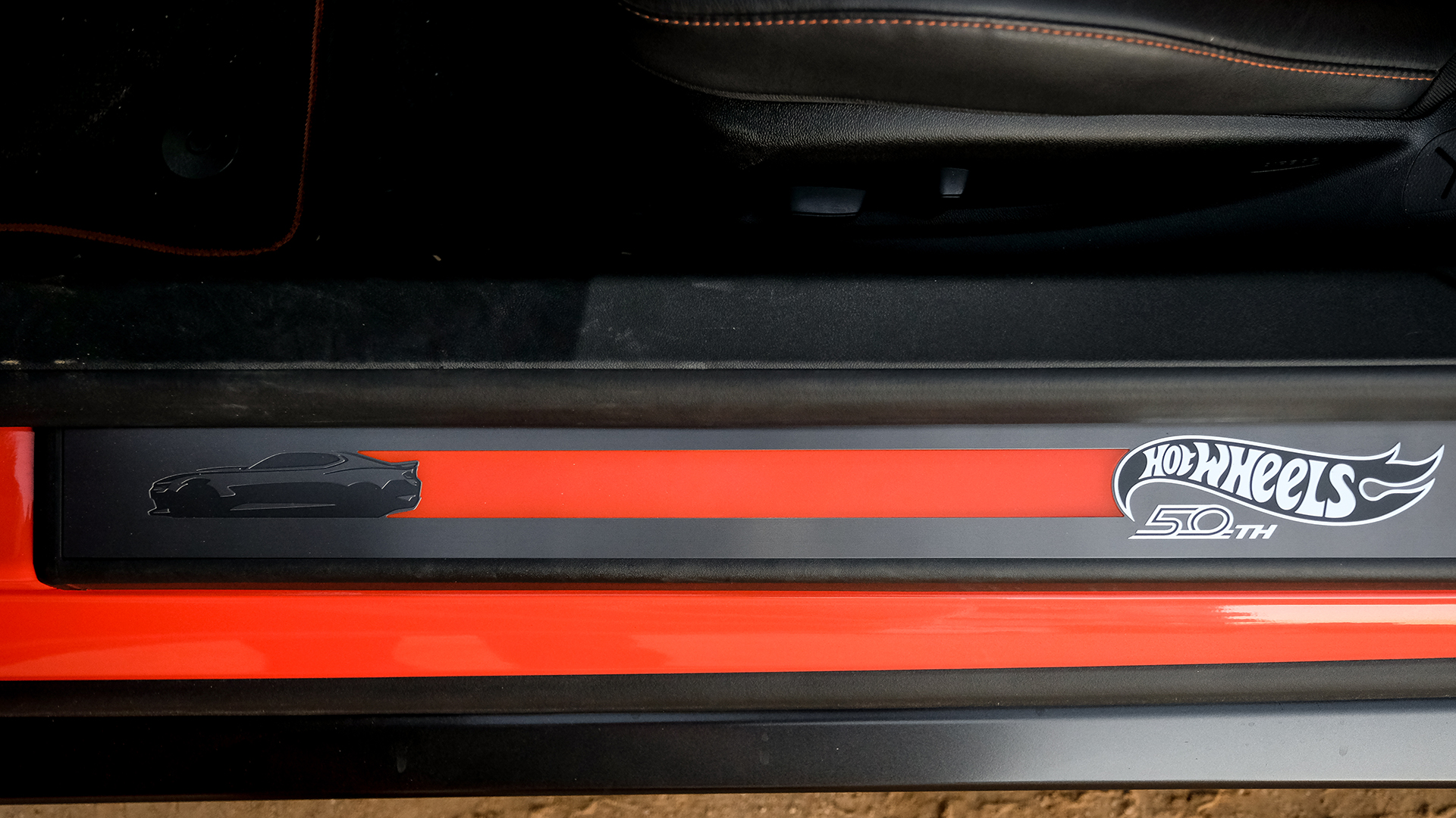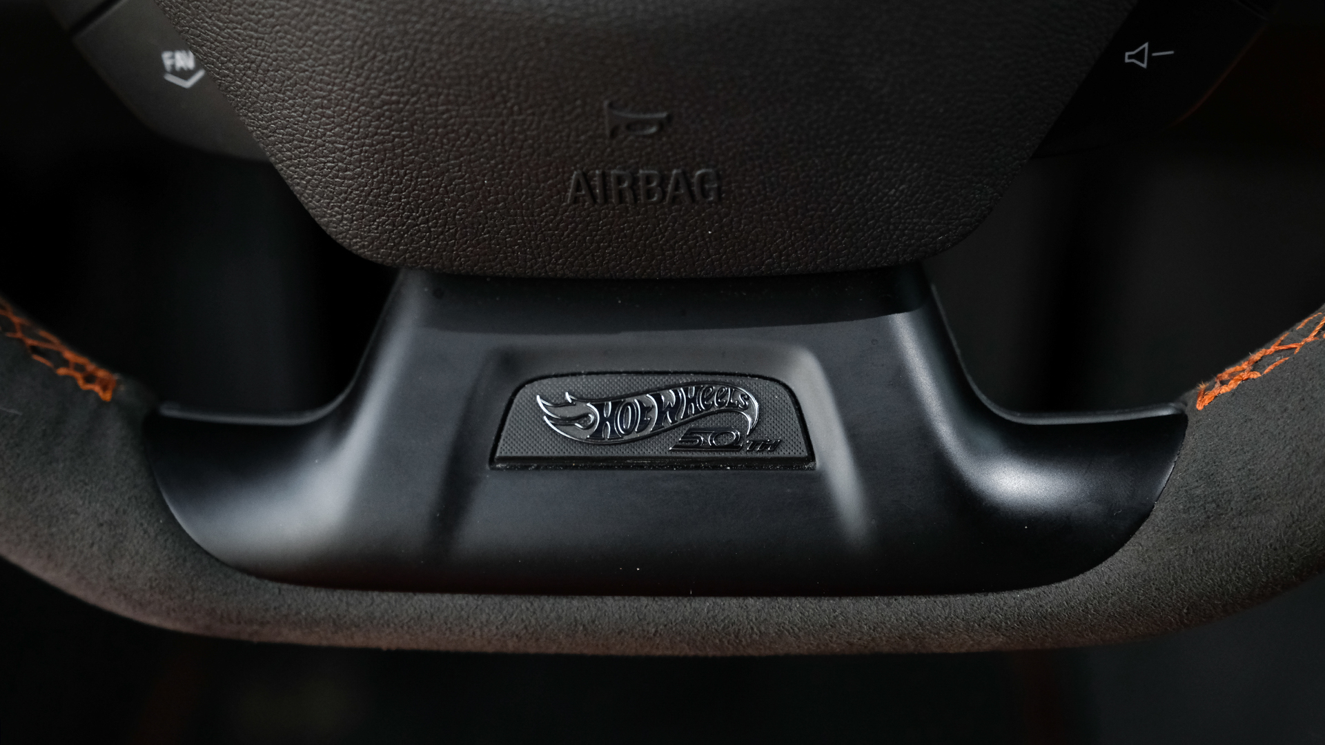 [After-the-Fact-Check: The Hot Wheels package also adds Hot Wheels 50th Anniversary fender badges, unique wheels, orange brake calipers, and an orange-and-black interior scheme with more Hot Wheels touches.]