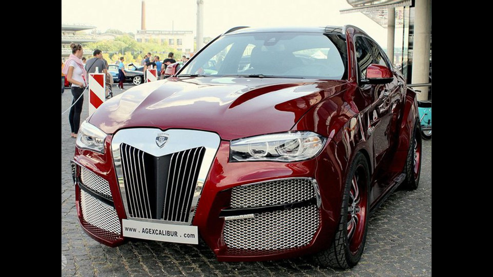 The interior is similarly blasphemed. An ordinarily nice BMW cabin has been slathered in crocodile skin and carbon fiber, and what look to be hood vents from a Mercedes C-Class. Imagine the inside of King Arthur’s scabbard, were he a sturgeon-poaching oil baron who may or may not hunt bears from a helicopter with Vladimir P. himself. That metaphor really works out, actually, because this isn’t even a modified BMW X6. It is an Alligator Excalibur. Merlin strike me dead. Or at least take my eyes.